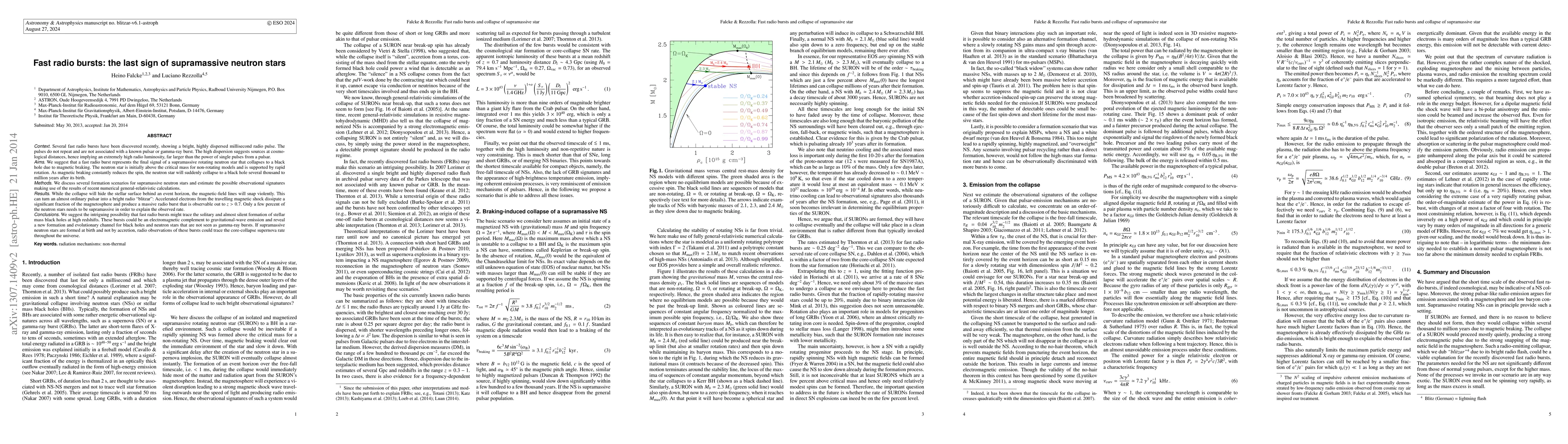 This paper proposes that fast radio bursts are the final signals of supramassive neutron stars collapsing into black holes due to magnetic braking. The collapse triggers a violent snapping of magnetic fields, producing a massive radio burst observable at high redshifts, offering a new channel for stellar mass black hole formation.