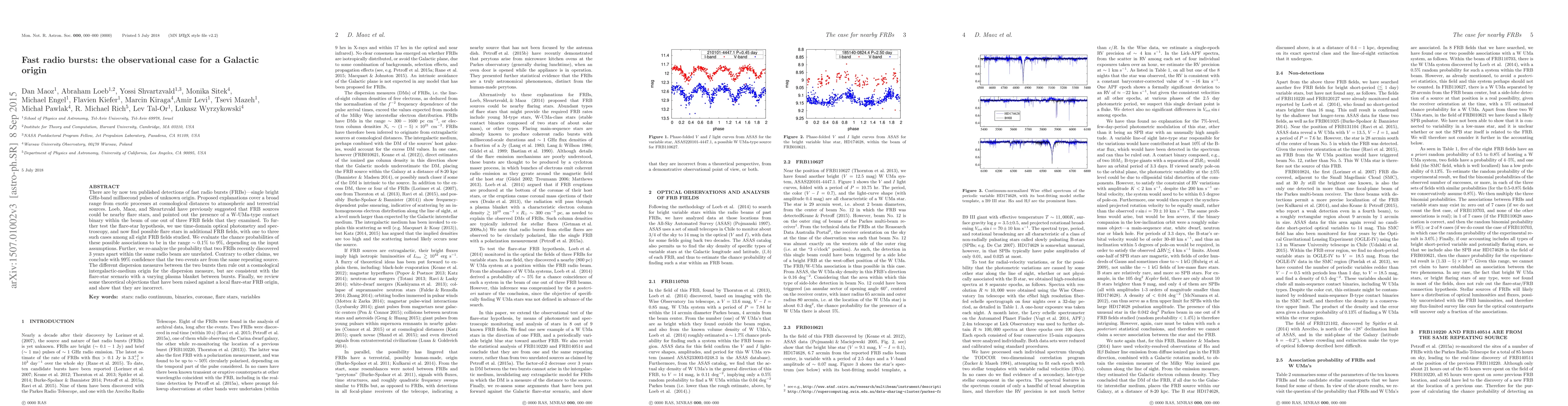 A study finds 1-3 flare stars in 8 Fast Radio Burst fields, with 99% confidence that two FRBs within the same beam come from the same source, contradicting cosmological origins.
