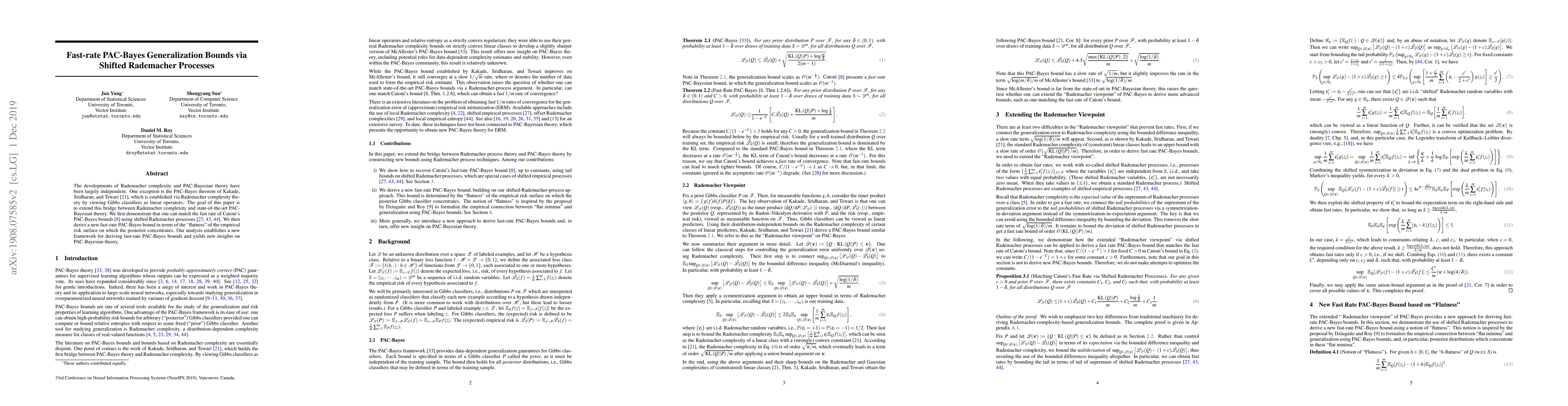This paper extends the connection between Rademacher complexity and PAC-Bayesian theory, demonstrating how shifted Rademacher processes can match Catoni's fast-rate PAC-Bayes bounds. It introduces a new fast-rate PAC-Bayes bound based on the "flatness" of the empirical risk surface, providing a novel framework for fast-rate PAC-Bayes generalization bounds.