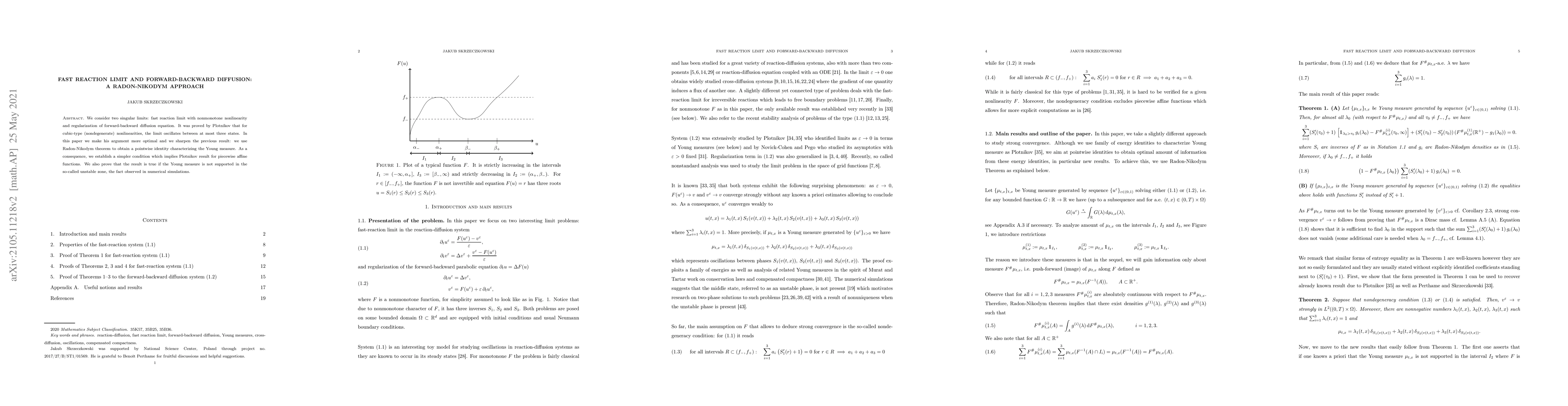 We consider two singular limits: fast reaction limit with nonmonotone nonlinearity and regularization of forward-backward diffusion equation. It was proved by Plotnikov that for cubic-type (nondegenerate) nonlinearities, the limit oscillates between at most three states. In this paper we make his argument more optimal and we sharpen the previous result: we use Radon-Nikodym theorem to obtain a pointwise identity characterizing the Young measure. As a consequence, we establish a simpler condition which implies Plotnikov result for piecewise affine functions. We also prove that the result is true if the Young measure is not supported in the so-called unstable zone, the fact observed in numerical simulations.