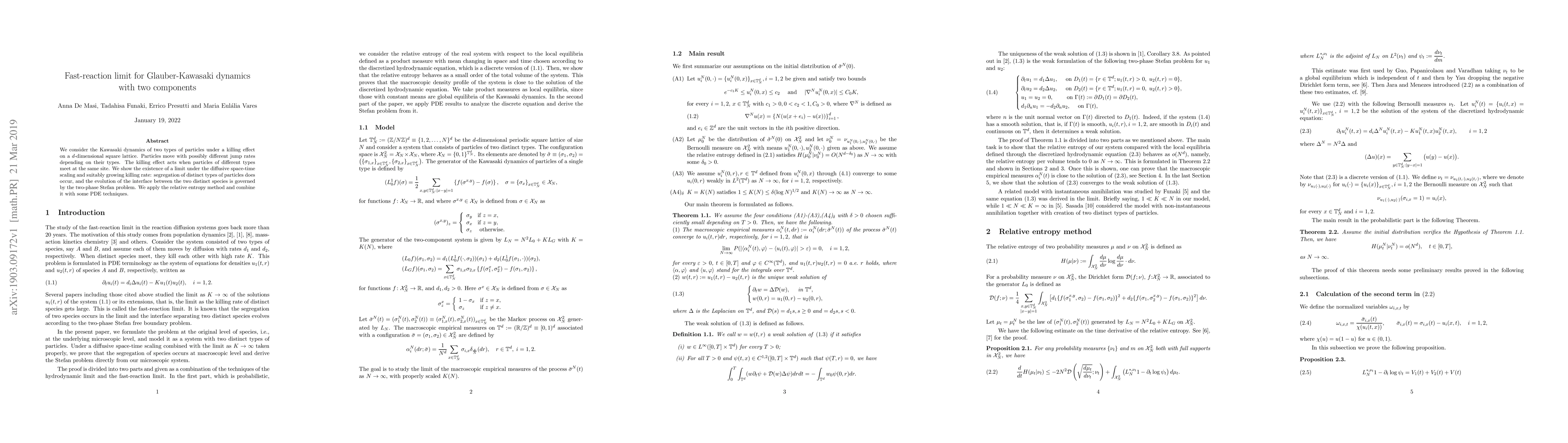 Researchers study how two types of particles segregate on a lattice with different jump rates and killing effects, finding that the system converges to a limit where distinct species separate and their interfaces evolve according to the two-phase Stefan problem.