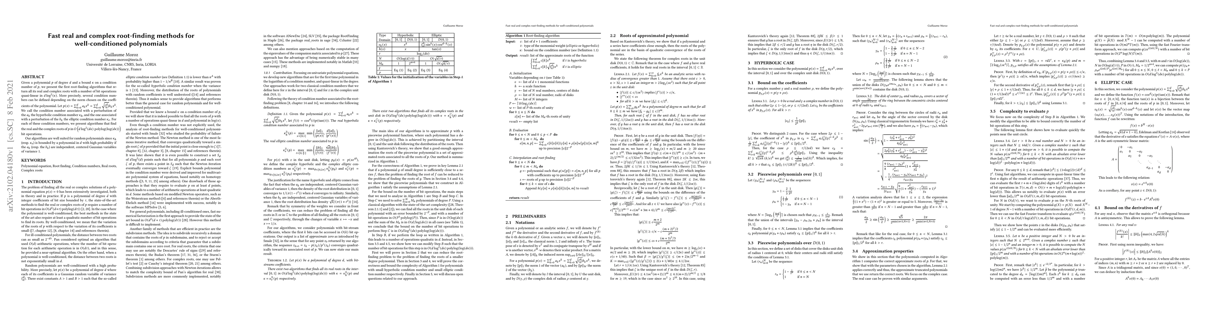 Given a polynomial $p$ of degree $d$ and a bound $\kappa$ on a condition number of $p$, we present the first root-finding algorithms that return all its real and complex roots with a number of bit operations quasi-linear in $d \log^2(\kappa)$. More precisely, several condition numbers can be defined depending on the norm chosen on the coefficients of the polynomial. Let $p(x) = \sum\_{k=0}^d a\_k x^k = \sum\_{k=0}^d \sqrt{\binom d k} b\_k x^k$. We call the condition number associated with a perturbation of the $a\_k$ the hyperbolic condition number $\kappa\_h$, and the one associated with a perturbation of the $b\_k$ the elliptic condition number $\kappa\_e$. For each of these condition numbers, we present algorithms that find the real and the complex roots of $p$ in $O\left(d\log^2(d\kappa)\ \text{polylog}(\log(d\kappa))\right)$ bit operations.Our algorithms are well suited for random polynomials since $\kappa\_h$ (resp. $\kappa\_e$) is bounded by a polynomial in $d$ with high probability if the $a\_k$ (resp. the $b\_k$) are independent, centered Gaussian variables of variance $1$.