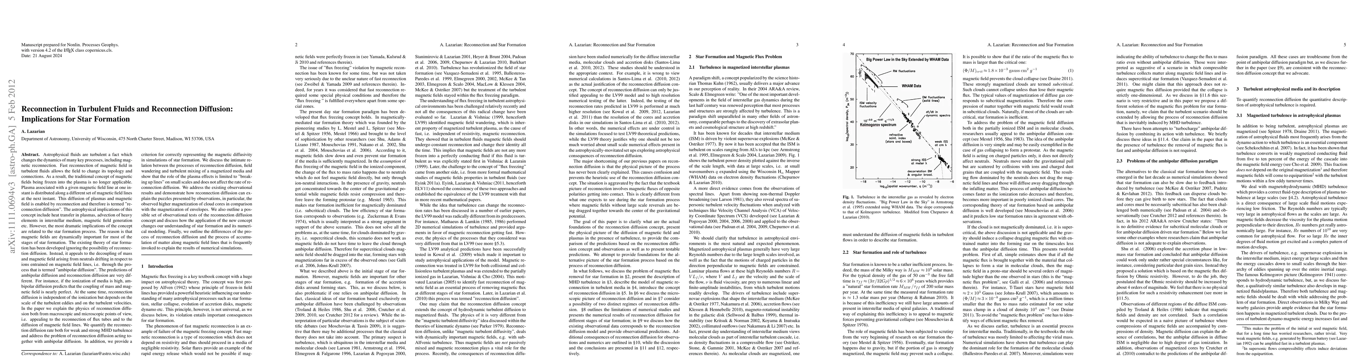 This paper investigates the implications of fast reconnection and reconnection diffusion in turbulent fluids for star formation, demonstrating how reconnection alters magnetic field topology and challenges traditional plasma-field coupling concepts. It provides a comprehensive analysis of reconnection diffusion rates and its impact on observational data, suggesting it can explain discrepancies in cloud core magnetization.