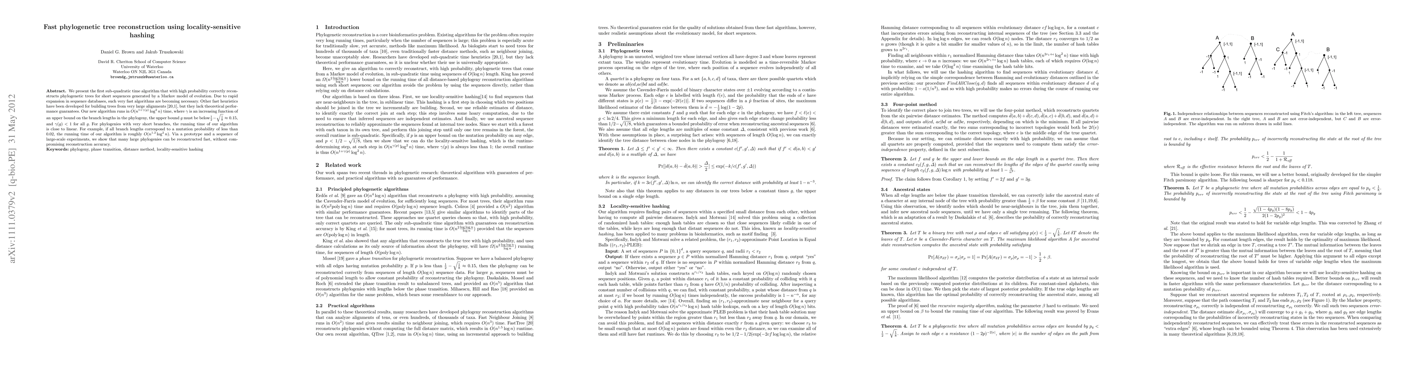 This research paper presents a sub-quadratic time algorithm for reconstructing phylogenetic trees with high accuracy, making it faster than existing heuristics for large alignments.