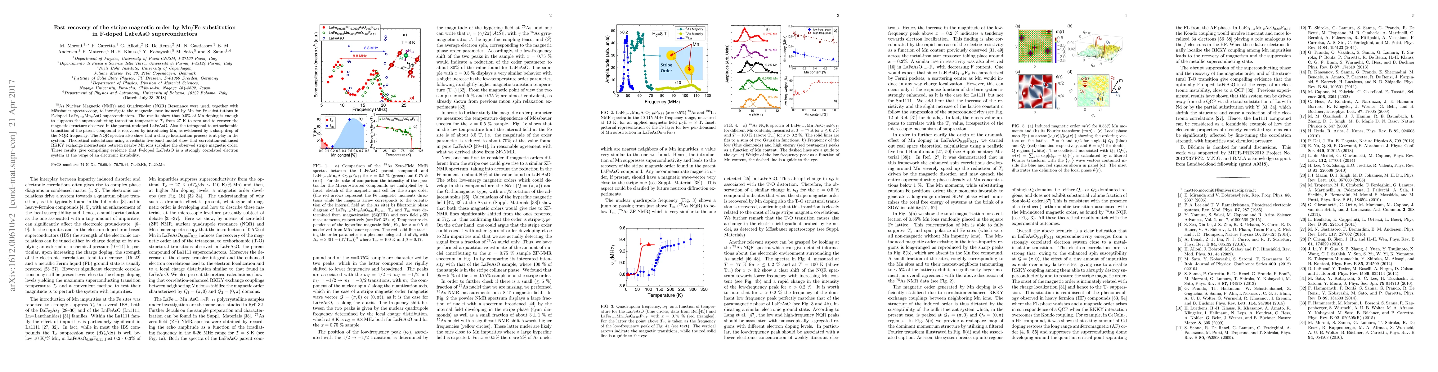 This study uses NMR, NQR, and Mössbauer spectroscopy to show that Mn substitution for Fe in F-doped LaFeAsO superconductors fully suppresses superconductivity and restores the stripe magnetic order and orthorhombic phase, indicating strong electron correlations in the system.