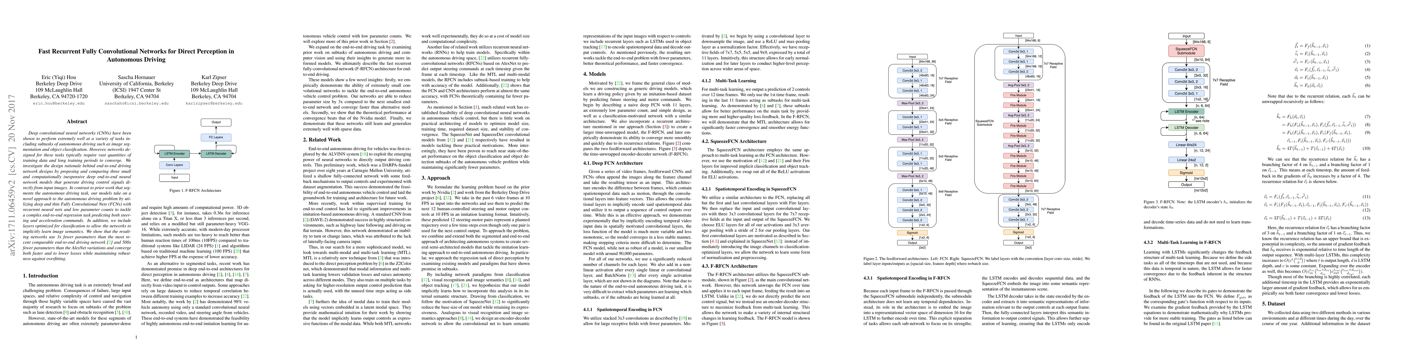 This paper proposes three computationally efficient deep neural network models for end-to-end autonomous driving, utilizing thin Fully Convolutional Networks with recurrent components to directly predict driving control signals. The models achieve faster convergence and lower losses with significantly fewer parameters compared to existing methods.