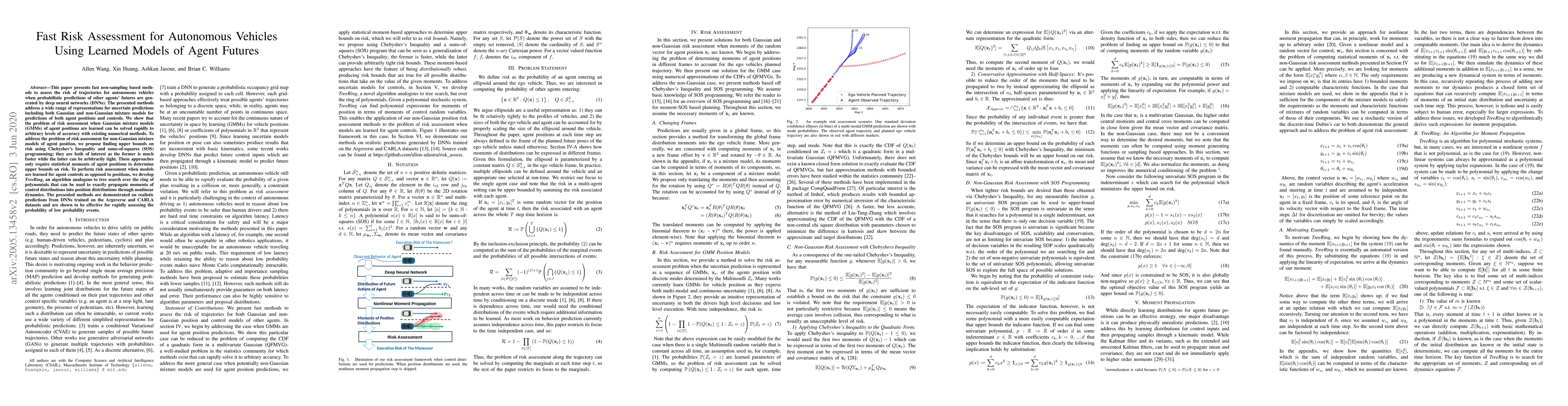 Researchers developed fast methods to assess risk for autonomous vehicles based on learned models of agent futures, achieving high accuracy with minimal computation.