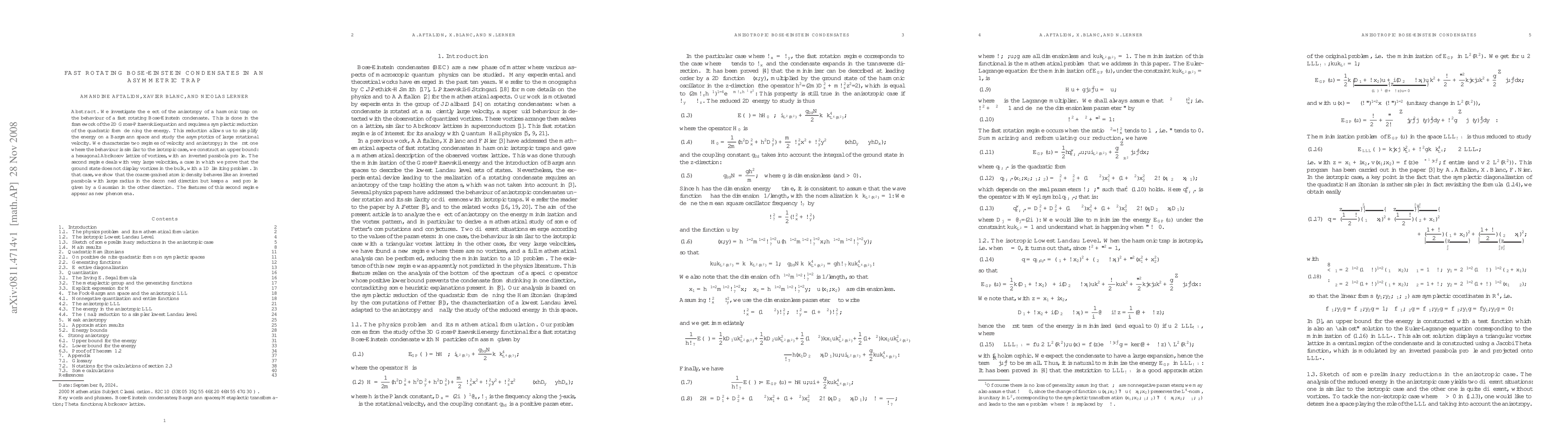 We investigate the effect of the anisotropy of a harmonic trap on the behaviour of a fast rotating Bose-Einstein condensate. This is done in the framework of the 2D Gross-Pitaevskii equation and requires a symplectic reduction of the quadratic form defining the energy. This reduction allows us to simplify the energy on a Bargmann space and study the asymptotics of large rotational velocity. We characterize two regimes of velocity and anisotropy; in the first one where the behaviour is similar to the isotropic case, we construct an upper bound: a hexagonal Abrikosov lattice of vortices, with an inverted parabola profile. The second regime deals with very large velocities, a case in which we prove that the ground state does not display vortices in the bulk, with a 1D limiting problem. In that case, we show that the coarse grained atomic density behaves like an inverted parabola with large radius in the deconfined direction but keeps a fixed profile given by a Gaussian in the other direction. The features of this second regime appear as new phenomena.