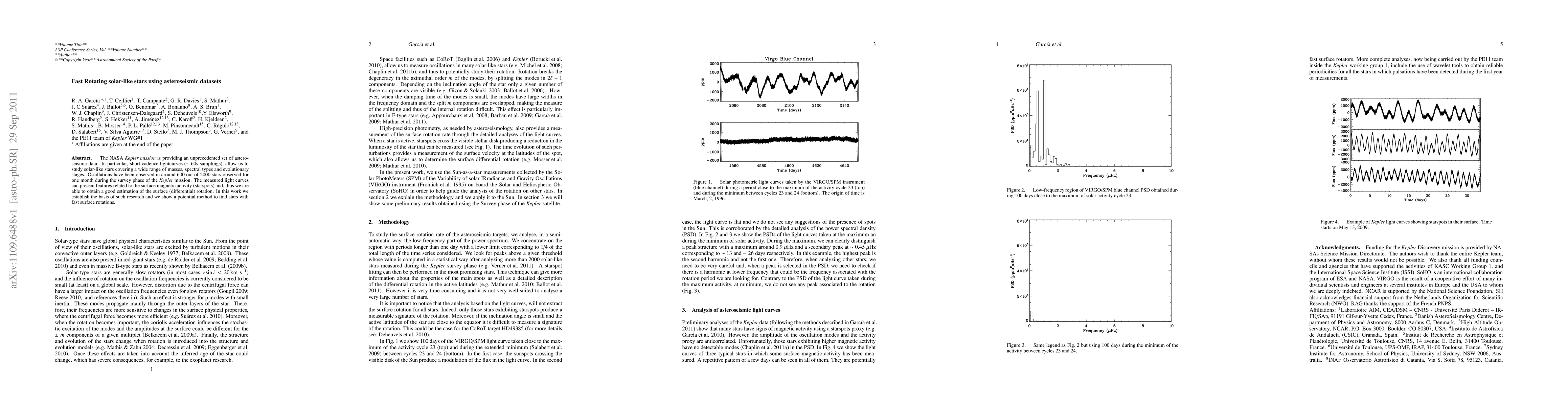 This paper utilizes NASA's Kepler mission asteroseismic data to study solar-like stars, focusing on oscillations that reveal surface magnetic activity and differential rotation. The study identifies a method to detect stars with fast surface rotations using short-cadence lightcurves.