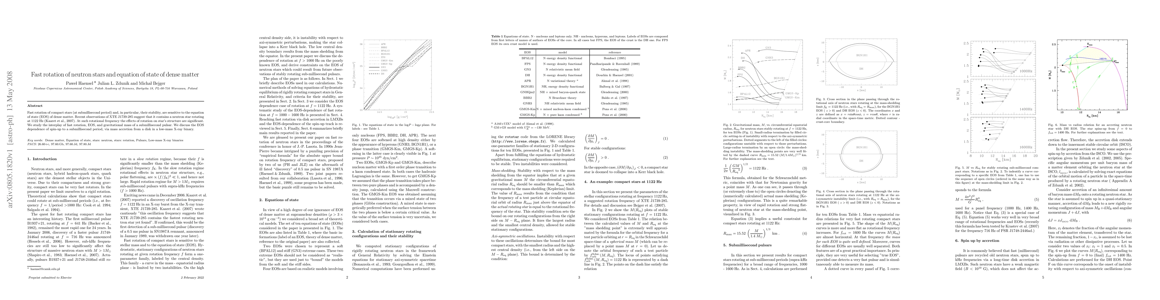 This paper investigates the impact of fast rotation on neutron stars, particularly focusing on their stability and structure, which are influenced by the equation of state (EOS) of dense matter. It examines the implications of a submillisecond pulsar, like the one observed in XTE J1739-285, and explores how the EOS affects the star's ability to spin-up to such high frequencies through mass accretion.