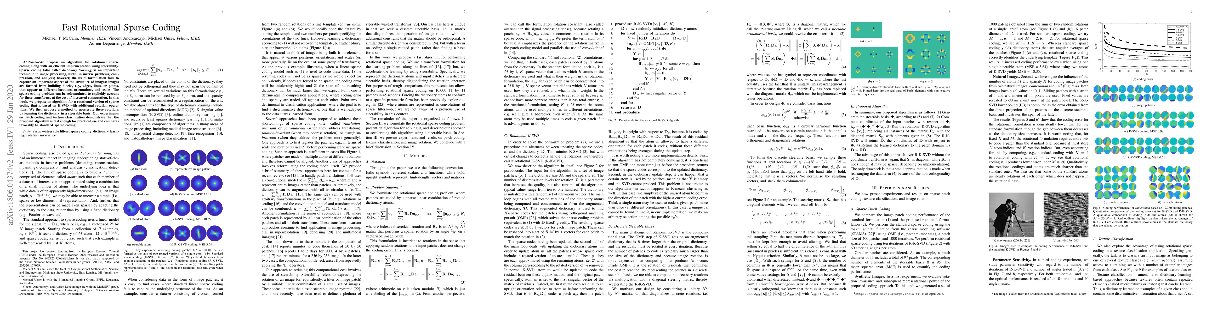 This paper proposes a fast rotational sparse coding algorithm based on K-SVD with steerability to efficiently handle image transforms, demonstrating improved performance in patch coding and texture classification. The method accelerates rotational operations by learning the dictionary in a steerable basis, making it practical for real-world applications.