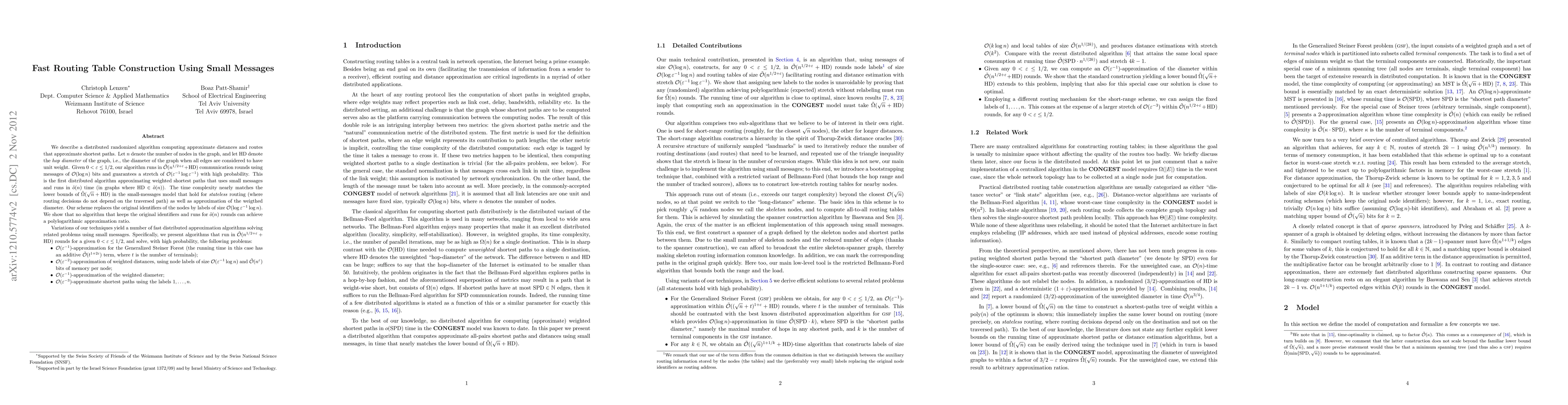 This paper presents a distributed algorithm that approximates shortest paths in graphs using small messages, achieving nearly optimal time complexity and high probability of accuracy.