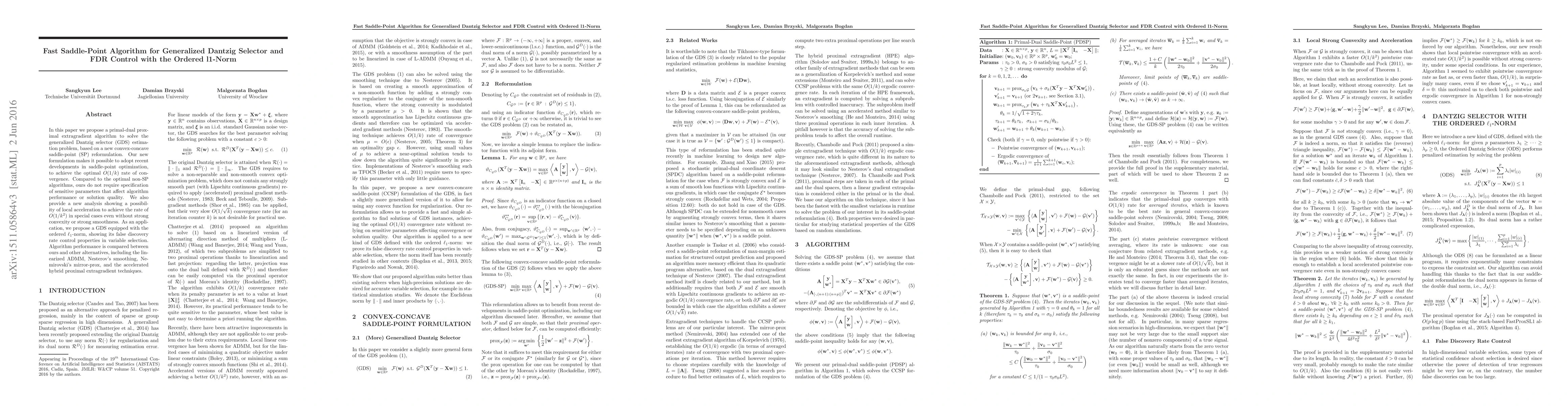 This paper introduces a primal-dual proximal extragradient algorithm for solving the generalized Dantzig selector, achieving optimal convergence rates without sensitive parameter tuning. It also demonstrates local acceleration potential and applies the method to control false discovery rates in variable selection using an ordered $\ell_1$-norm.