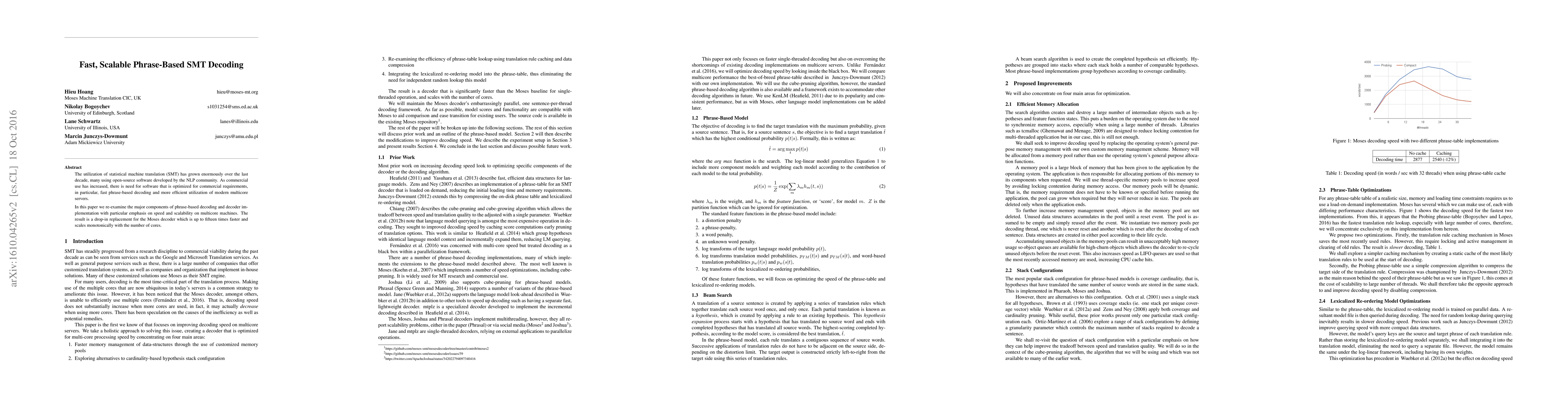 This paper presents a new, faster, and scalable phrase-based SMT decoding method optimized for commercial use, achieving up to fifteen times the speed of the Moses decoder and demonstrating monotonic scalability on multicore systems.