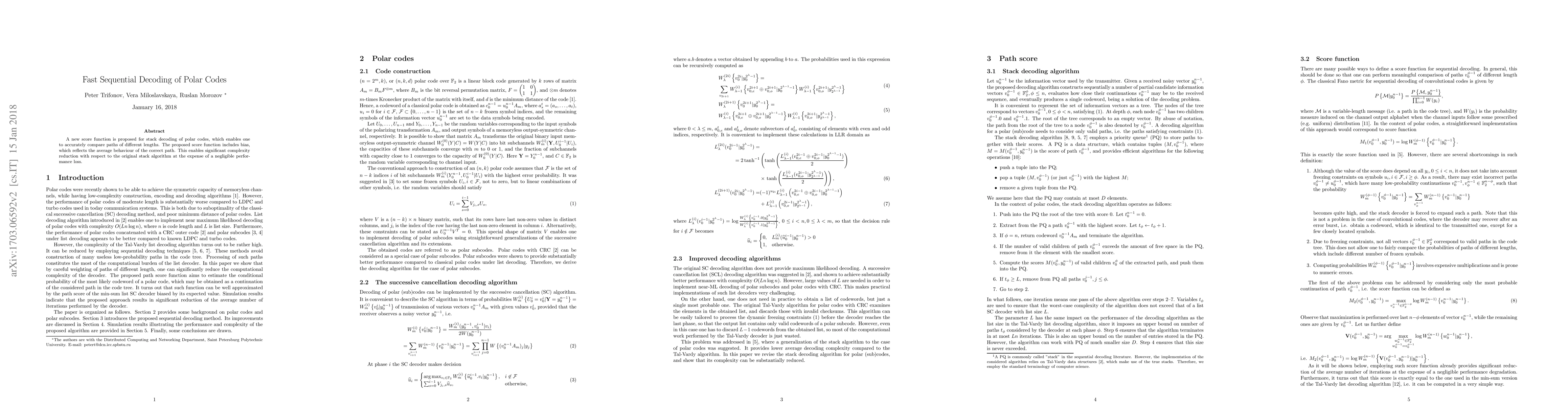 Researchers propose a new score function for stack decoding of polar codes that reduces complexity while maintaining negligible performance loss.