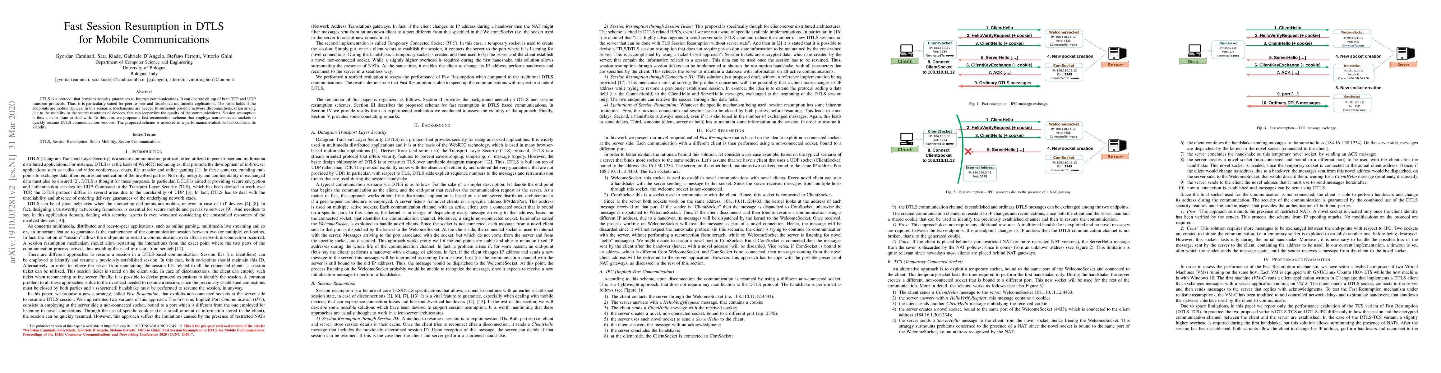 Researchers propose a fast session resumption scheme for DTLS in mobile communications to quickly re-establish secure connections after disconnections, improving communication quality.