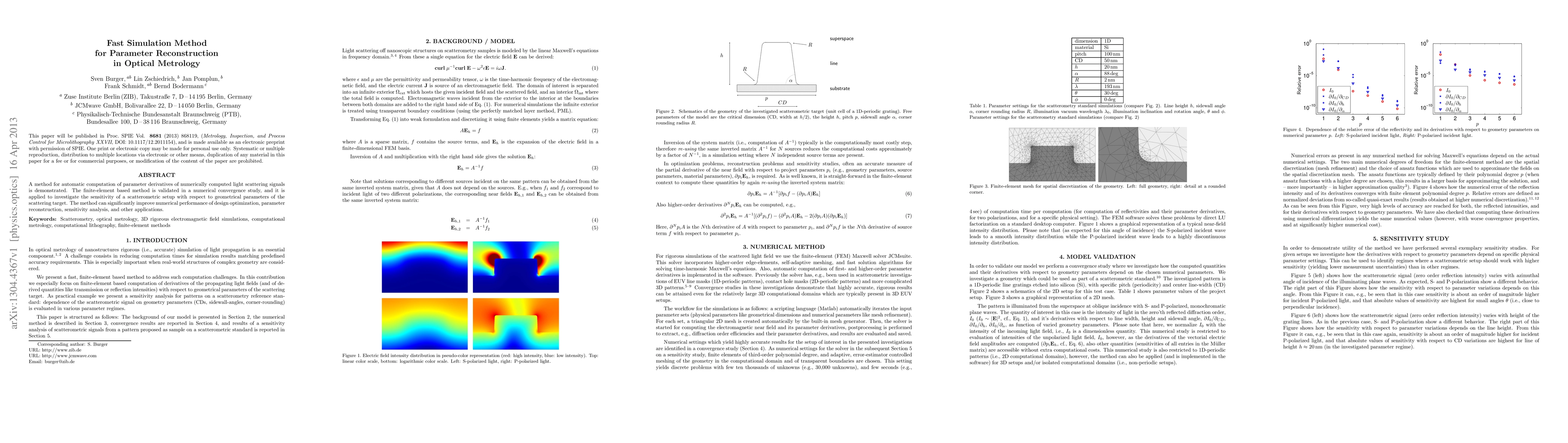 A new method for fast computation of parameter derivatives in optical metrology improves design optimization, parameter reconstruction, and sensitivity analysis by significantly reducing numerical performance.