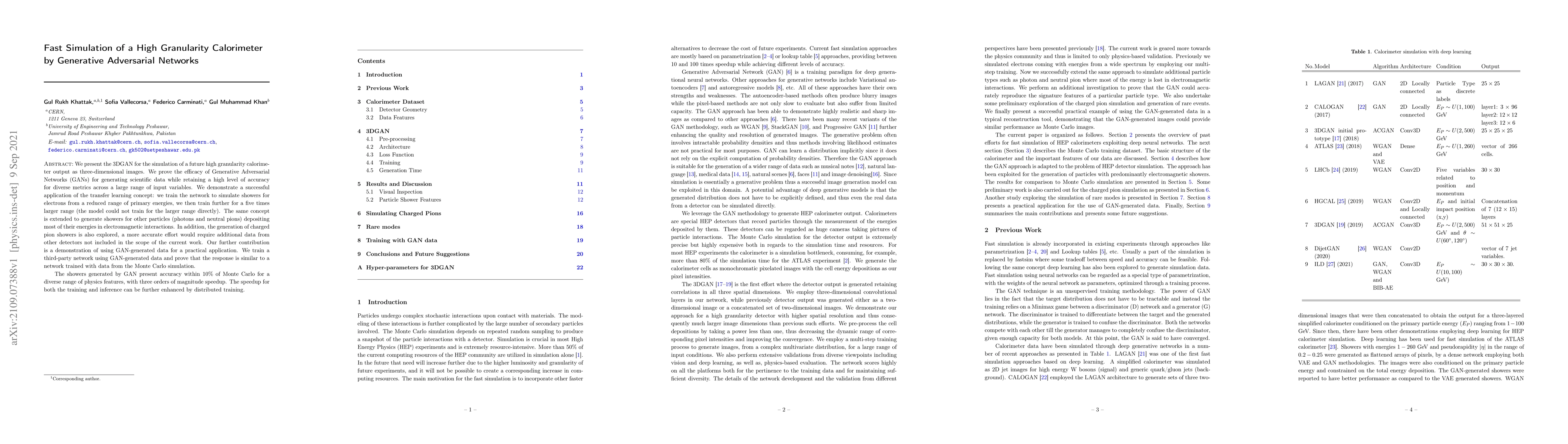 This paper introduces 3DGAN for simulating high granularity calorimeter outputs using Generative Adversarial Networks (GANs), demonstrating their accuracy and efficiency. The method employs transfer learning to extend simulations across a broader range of particle energies and types, achieving a three-order-of-magnitude speedup compared to Monte Carlo simulations.