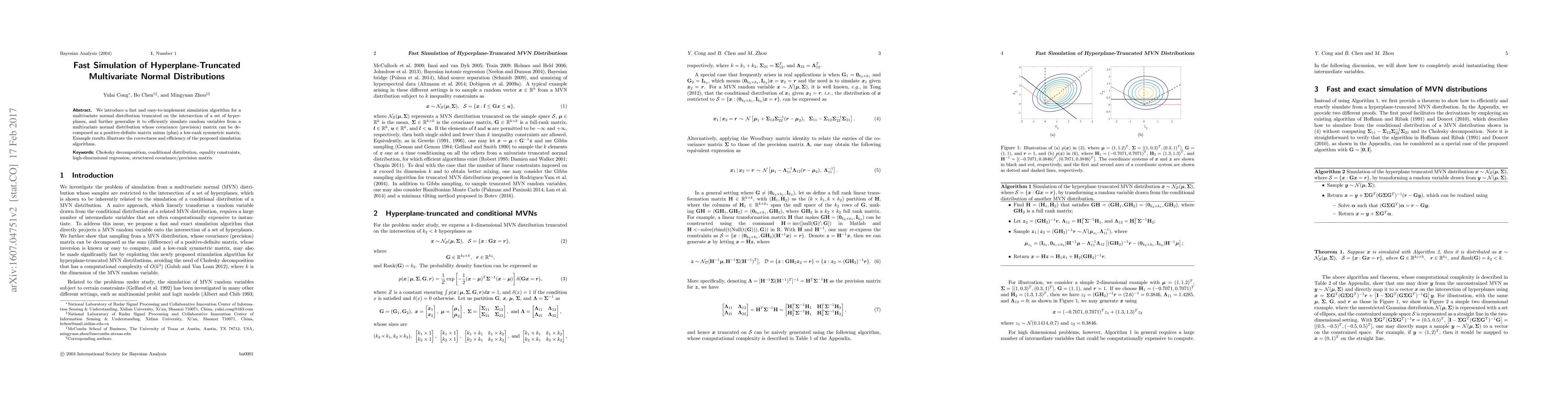 This paper presents a fast simulation algorithm for truncated multivariate normal distributions on hyperplane intersections and extends it for distributions with covariance matrices decomposed into a positive-definite matrix plus a low-rank symmetric matrix, demonstrating its correctness and efficiency.