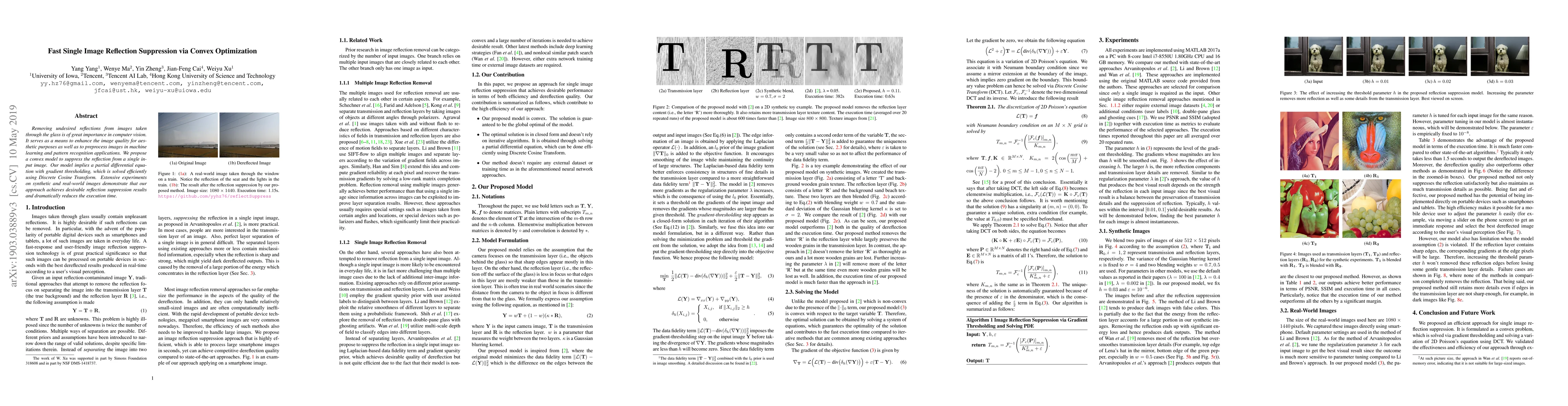 A new method using convex optimization effectively removes unwanted reflections from images taken through glass, achieving good results on both synthetic and real-world images.