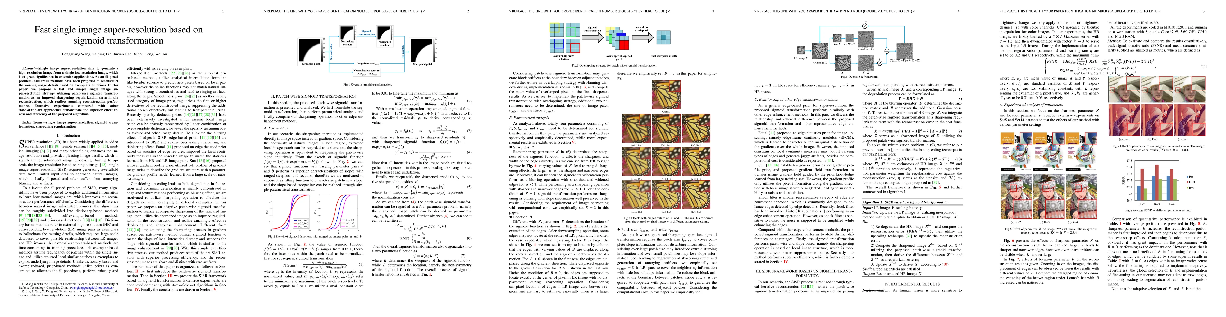 This paper introduces a fast single image super-resolution method using patch-wise sigmoid transformation as a sharpening regularization term, achieving superior reconstruction performance and efficiency compared to other state-of-the-art techniques. Extensive experiments validate the effectiveness of the proposed approach.