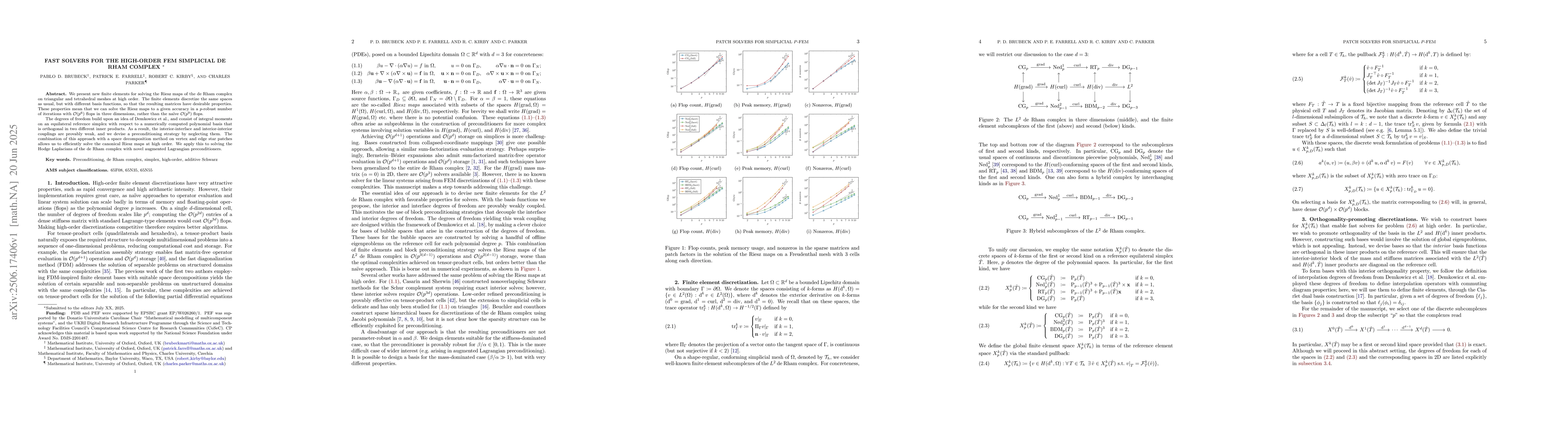 We present new finite elements for solving the Riesz maps of the de Rham complex on triangular and tetrahedral meshes at high order. The finite elements discretize the same spaces as usual, but with different basis functions, so that the resulting matrices have desirable properties. These properties mean that we can solve the Riesz maps to a given accuracy in a $p$-robust number of iterations with $\mathcal{O}(p^6)$ flops in three dimensions, rather than the na\"ive $\mathcal{O}(p^9)$ flops. The degrees of freedom build upon an idea of Demkowicz et al., and consist of integral moments on an equilateral reference simplex with respect to a numerically computed polynomial basis that is orthogonal in two different inner products. As a result, the interior-interface and interior-interior couplings are provably weak, and we devise a preconditioning strategy by neglecting them. The combination of this approach with a space decomposition method on vertex and edge star patches allows us to efficiently solve the canonical Riesz maps at high order. We apply this to solving the Hodge Laplacians of the de Rham complex with novel augmented Lagrangian preconditioners.