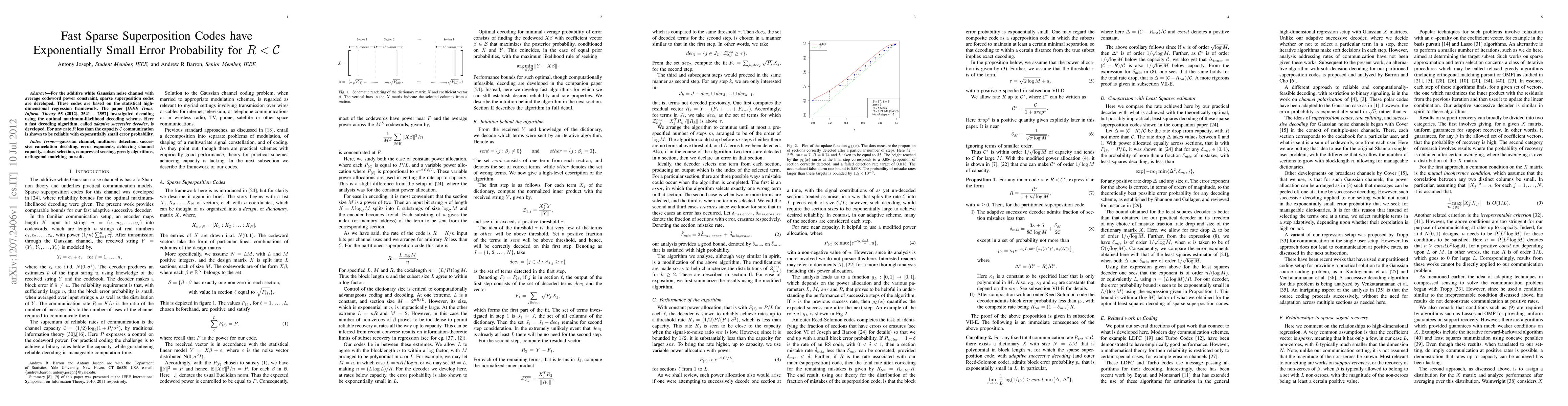 This paper develops fast sparse superposition codes for the additive white Gaussian noise channel, employing a fast adaptive successive decoder. It demonstrates reliable communication with exponentially small error probability for rates below the channel capacity.