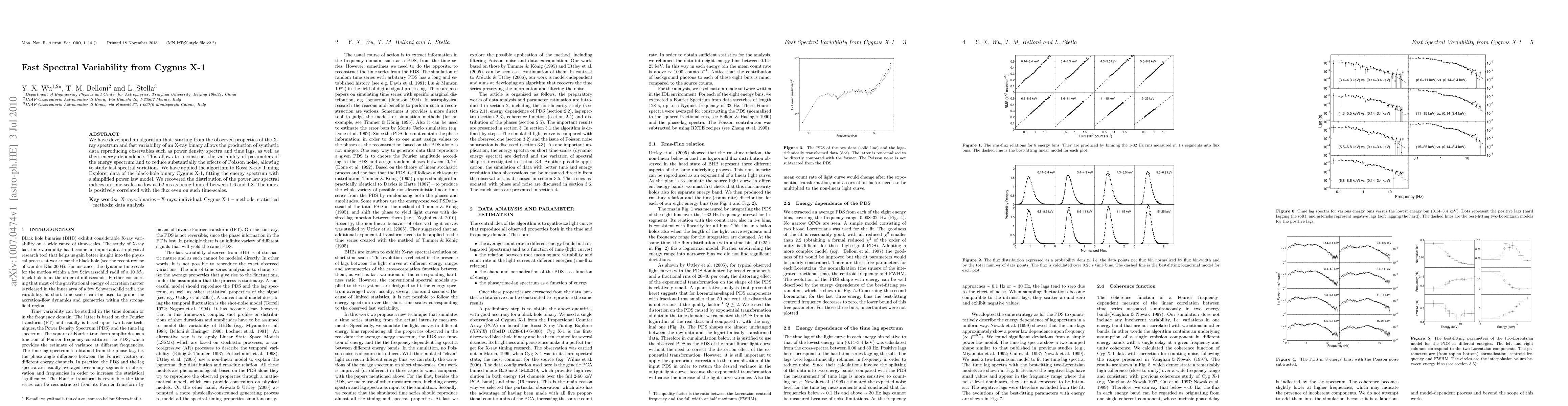 We have developed an algorithm that, starting from the observed properties of the X-ray spectrum and fast variability of an X-ray binary allows the production of synthetic data reproducing observables such as power density spectra and time lags, as well as their energy dependence. This allows to reconstruct the variability of parameters of the energy spectrum and to reduce substantially the effects of Poisson noise, allowing to study fast spectral variations. We have applied the algorithm to Rossi X-ray Timing Explorer data of the black-hole binary Cygnus X-1, fitting the energy spectrum with a simplified power law model. We recovered the distribution of the power law spectral indices on time-scales as low as 62 ms as being limited between 1.6 and 1.8. The index is positively correlated with the flux even on such time-scales.