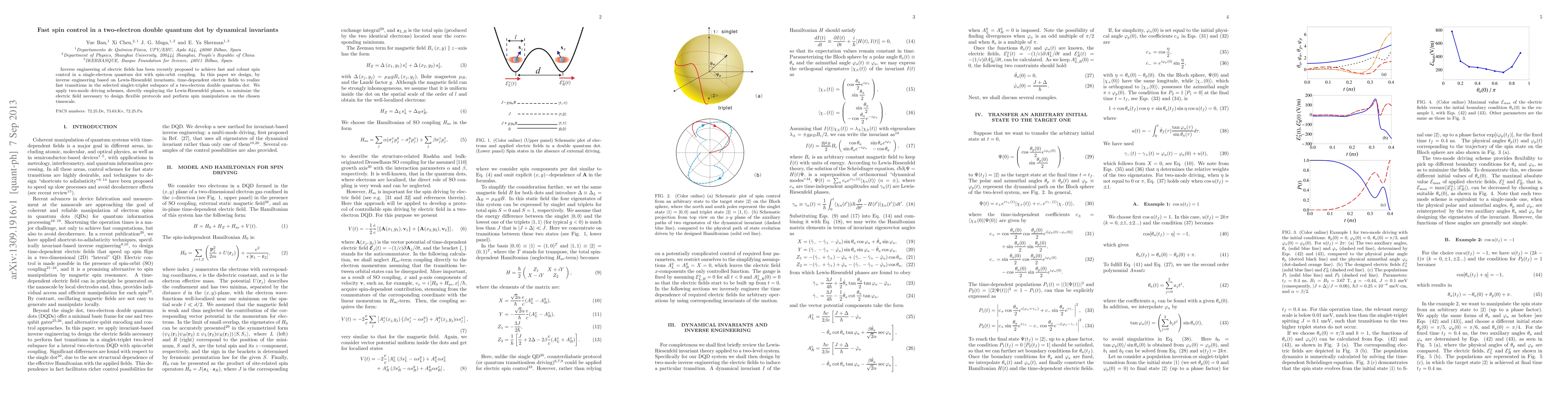 This paper proposes using inverse engineering of electric fields, based on Lewis-Riesenfeld invariants, to achieve fast spin transitions in the singlet-triplet subspace of a two-electron double quantum dot, employing two-mode driving schemes to minimize field strength and enable flexible spin manipulation protocols.
