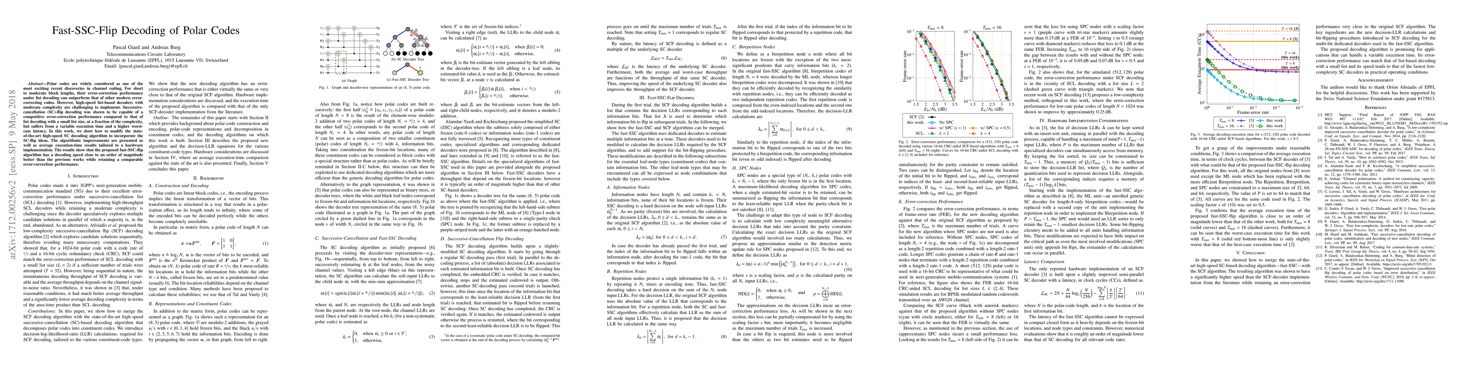 This paper presents a fast-SSC-flip decoding algorithm for polar codes, improving on existing SC decoding methods by achieving near-order-of-magnitude speedups while maintaining competitive error-correction performance and reducing variable execution time. The proposed method is tailored for hardware implementation, demonstrating significant average execution-time improvements.