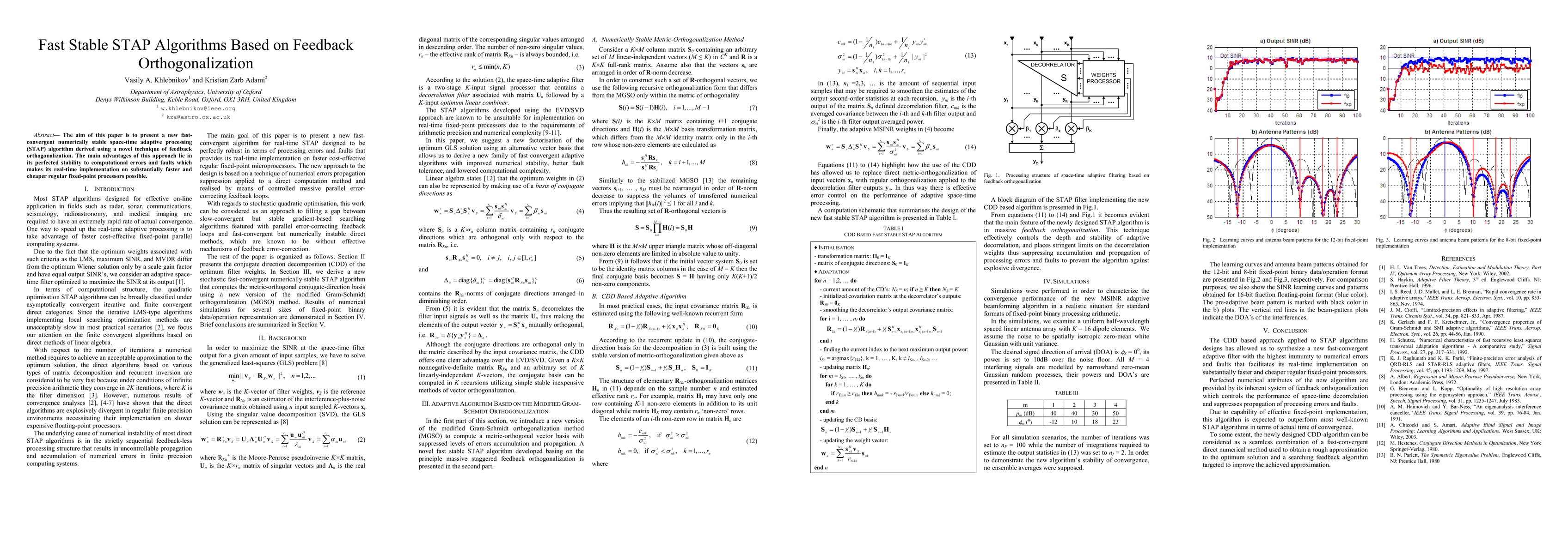 The aim of this paper is to present a new fast-convergent numerically stable space-time adaptive processing (STAP) algorithm derived using a novel technique of feedback orthogonalization. The main advantages of this approach lie in its perfected stability to computational errors and faults which makes its real-time implementation on substantially faster and cheaper regular fixed-point processors possible.