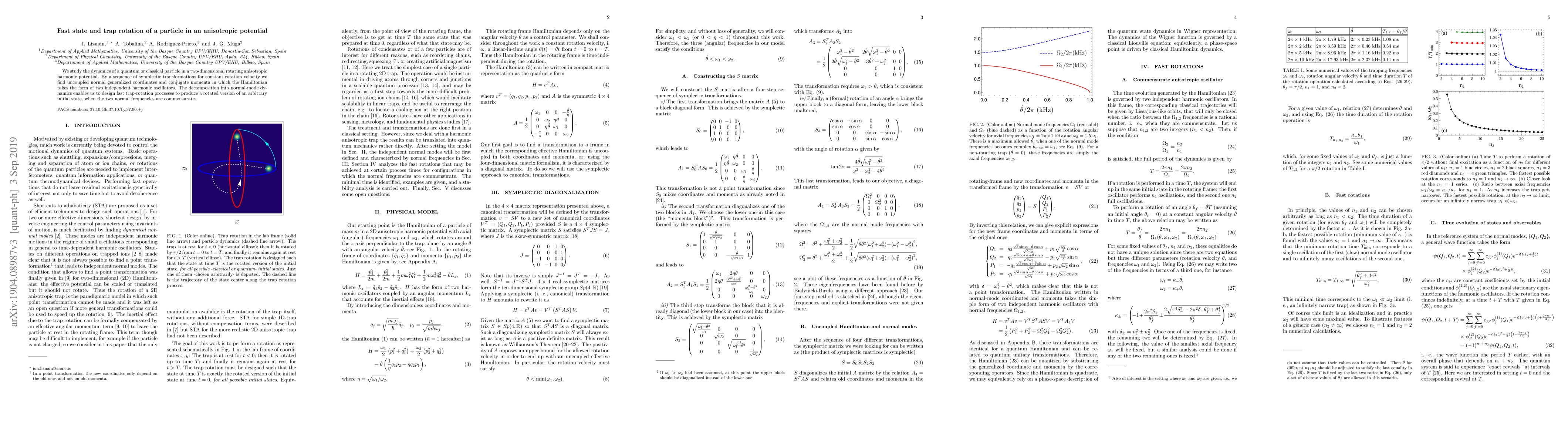 We study the dynamics of a quantum or classical particle in a two-dimensional rotating anisotropic harmonic potential. By a sequence of symplectic transformations for constant rotation velocity we find uncoupled normal generalized coordinates and conjugate momenta in which the Hamiltonian takes the form of two independent harmonic oscillators. The decomposition into normal-mode dynamics enables us to design fast trap-rotation processes to produce a rotated version of an arbitrary initial state, when the two normal frequencies are commensurate.