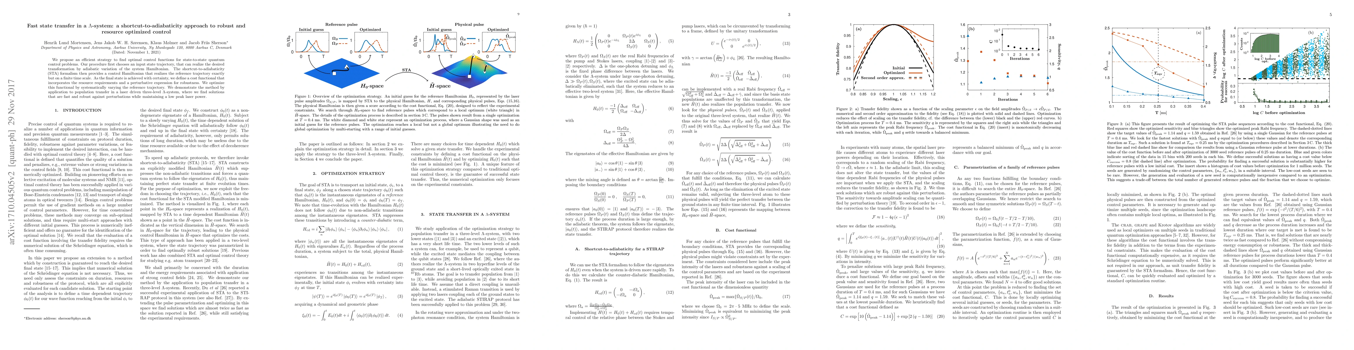 This paper proposes an optimal control strategy for fast and robust state transfer in a Λ-system using the shortcut-to-adiabaticity approach. The method optimizes resource requirements and robustness while achieving the desired state transformation efficiently.