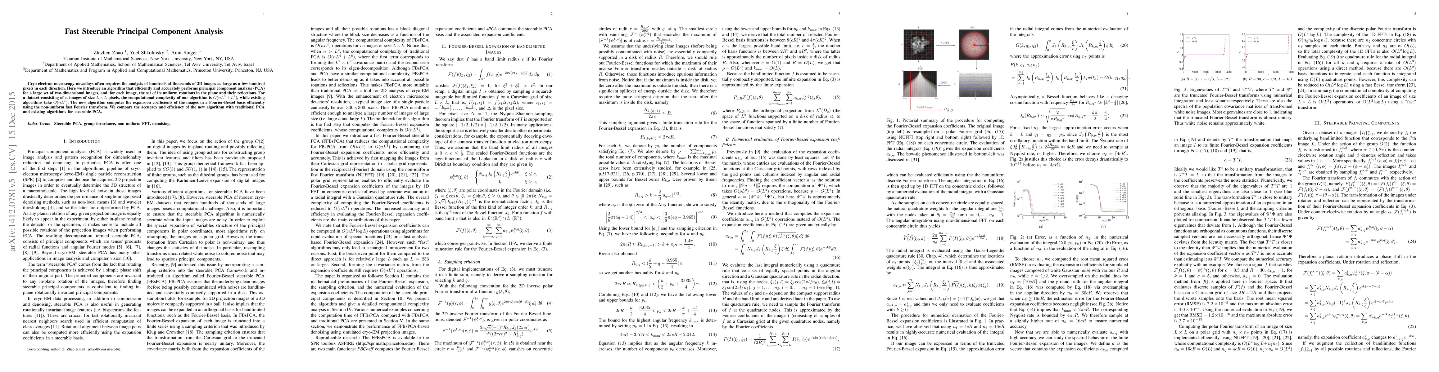 Cryo-electron microscopy nowadays often requires the analysis of hundreds of thousands of 2D images as large as a few hundred pixels in each direction. Here we introduce an algorithm that efficiently and accurately performs principal component analysis (PCA) for a large set of two-dimensional images, and, for each image, the set of its uniform rotations in the plane and their reflections. For a dataset consisting of $n$ images of size $L \times L$ pixels, the computational complexity of our algorithm is $O(nL^3 + L^4)$, while existing algorithms take $O(nL^4)$. The new algorithm computes the expansion coefficients of the images in a Fourier-Bessel basis efficiently using the non-uniform fast Fourier transform. We compare the accuracy and efficiency of the new algorithm with traditional PCA and existing algorithms for steerable PCA.