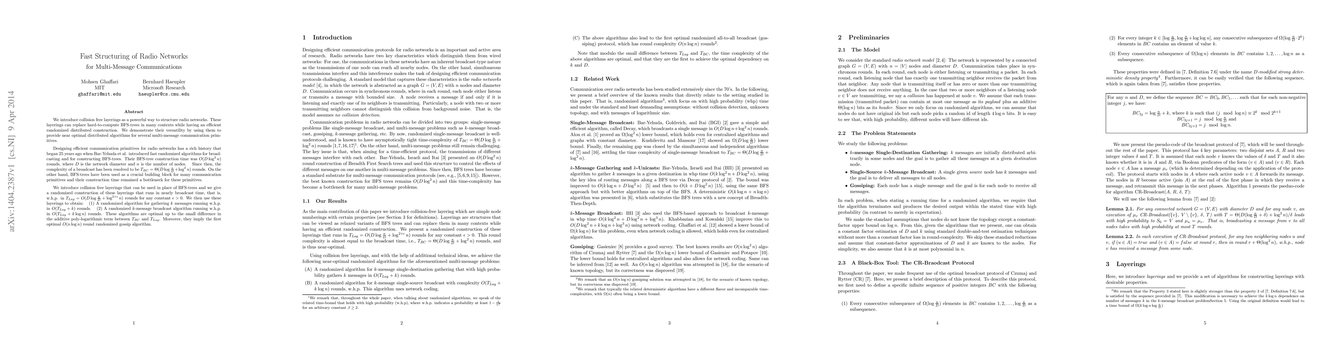 This paper proposes collision-free layerings as an efficient, randomized distributed method to structure radio networks, replacing traditional BFS-trees. These layerings enable near-optimal distributed algorithms for multi-message communication primitives, running in nearly broadcast time.
