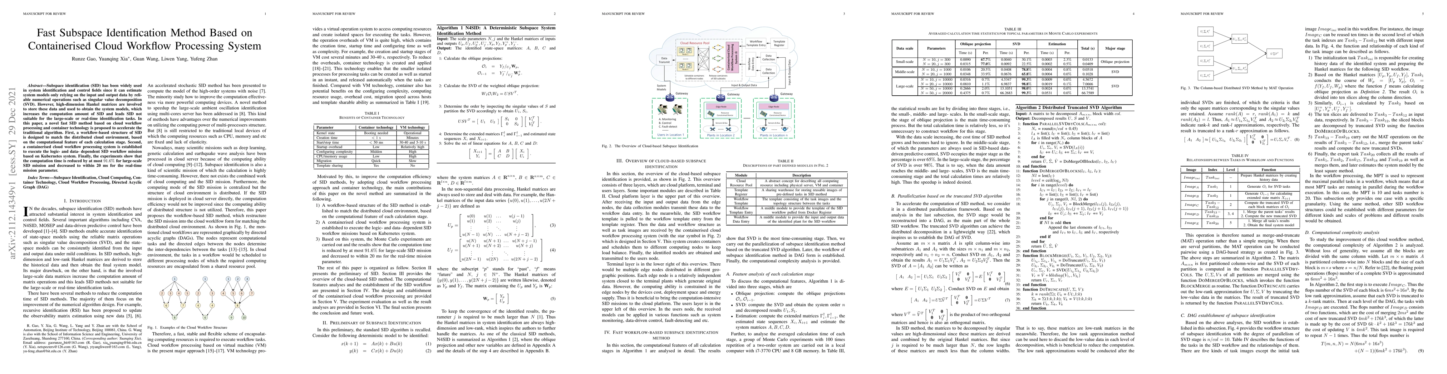 A new method using cloud workflow processing and container technology significantly reduces computation time for subspace identification in system control fields, making it suitable for large-scale and real-time tasks.