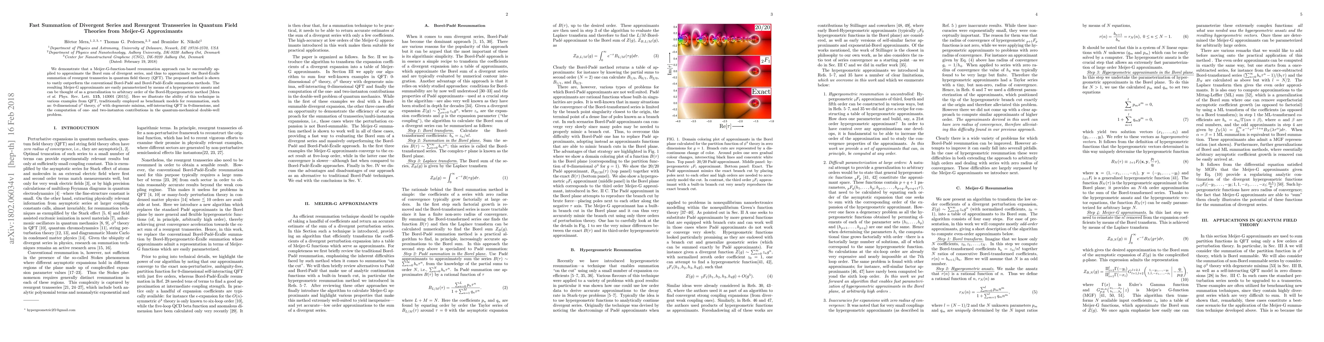 This paper introduces a Meijer-G-function-based resummation approach to approximate divergent series and resurgent transseries in quantum field theories, outperforming conventional Borel-Padé methods. The technique generalizes the Borel-Hypergeometric method and is demonstrated through examples in QFT, including 0-dimensional $\phi^4$ theory and quantum-mechanical double-well problems.