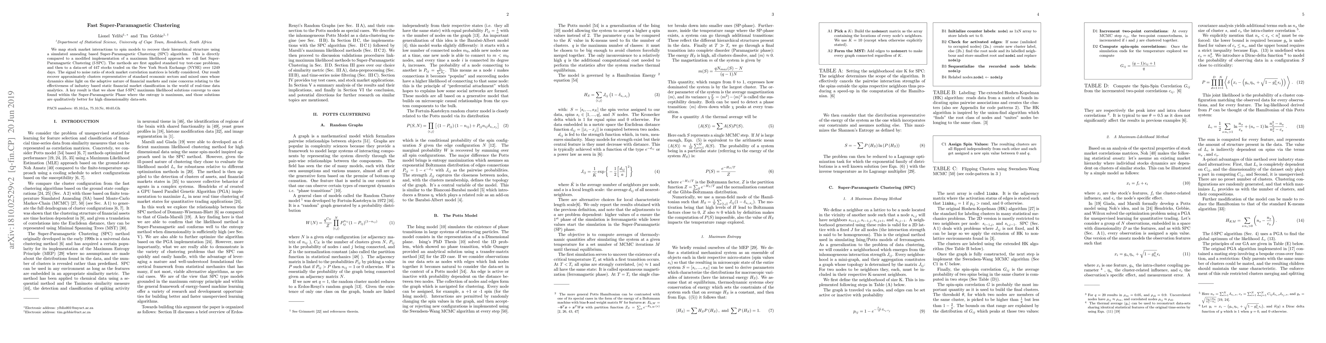 We map stock market interactions to spin models to recover their hierarchical structure using a simulated annealing based Super-Paramagnetic Clustering (SPC) algorithm. This is directly compared to a modified implementation of a maximum likelihood approach we call Fast Super-Paramagnetic Clustering (f-SPC). The methods are first applied standard toy test-case problems, and then to a data-set of 447 stocks traded on the New York Stock Exchange (NYSE) over 1249 days. The signal to noise ratio of stock market correlation matrices is briefly considered. Our result recover approximately clusters representative of standard economic sectors and mixed ones whose dynamics shine light on the adaptive nature of financial markets and raise concerns relating to the effectiveness of industry based static financial market classification in the world of real-time data analytics. A key result is that we show that f-SPC maximum likelihood solutions converge to ones found within the Super-Paramagnetic Phase where the entropy is maximum, and those solutions are qualitatively better for high dimensionality data-sets.