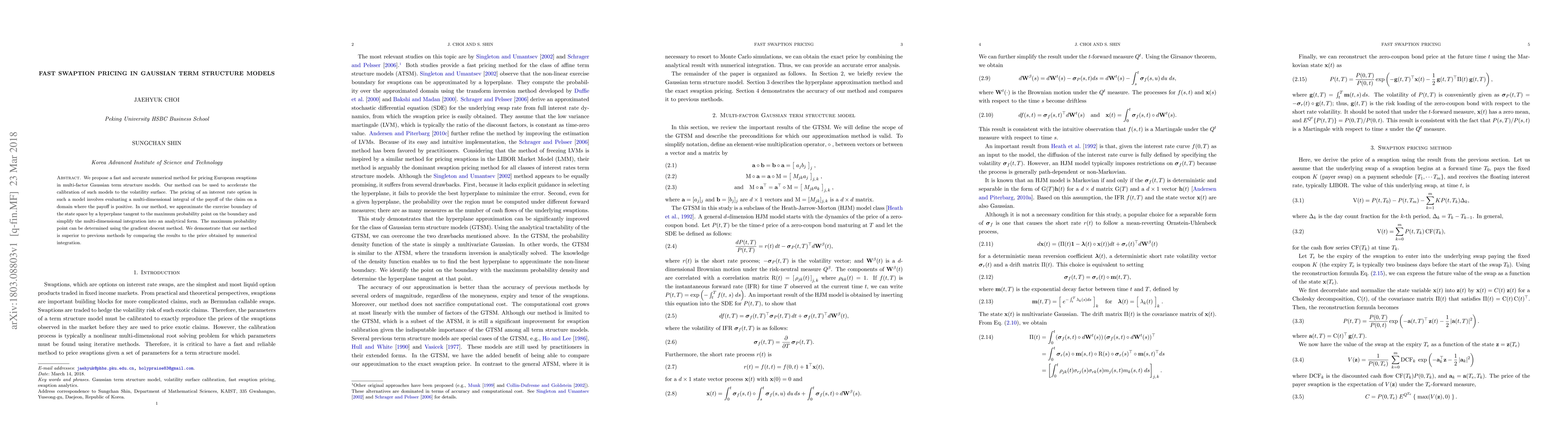 We propose a fast and accurate numerical method for pricing European swaptions in multi-factor Gaussian term structure models. Our method can be used to accelerate the calibration of such models to the volatility surface. The pricing of an interest rate option in such a model involves evaluating a multi-dimensional integral of the payoff of the claim on a domain where the payoff is positive. In our method, we approximate the exercise boundary of the state space by a hyperplane tangent to the maximum probability point on the boundary and simplify the multi-dimensional integration into an analytical form. The maximum probability point can be determined using the gradient descent method. We demonstrate that our method is superior to previous methods by comparing the results to the price obtained by numerical integration.
