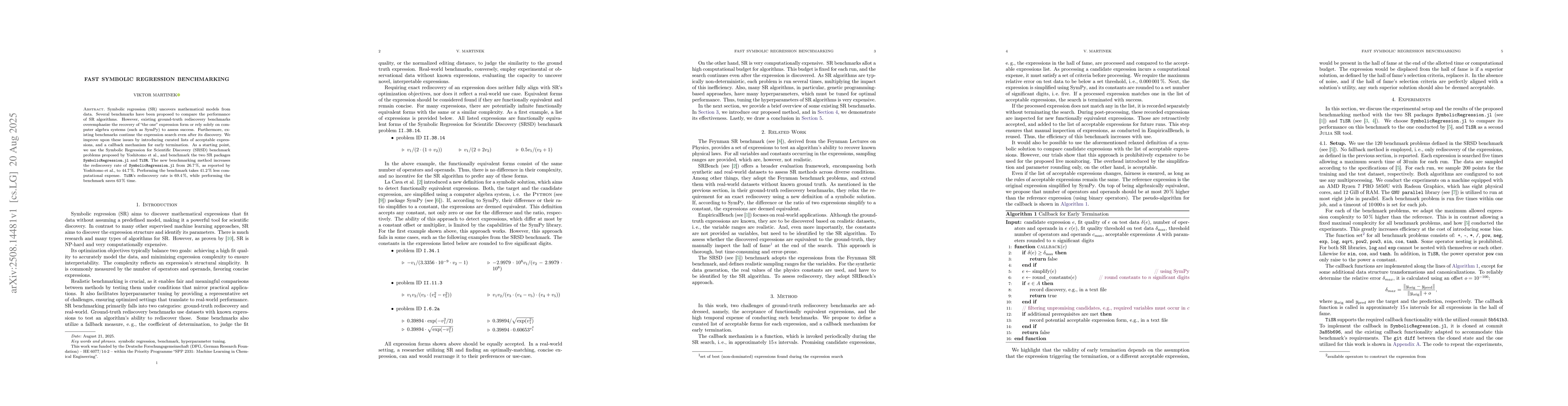 The paper introduces curated lists of acceptable expressions and a callback mechanism for early termination, significantly improving SR benchmark efficiency.