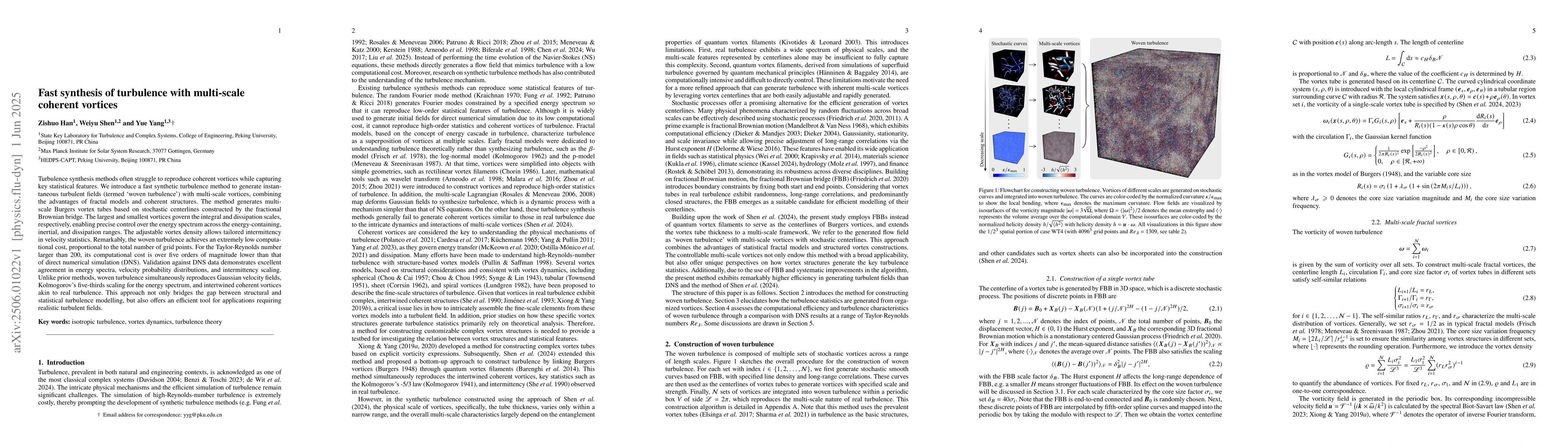 Researchers developed a fast method to generate turbulent fields with multi-scale coherent vortices, reducing computational cost by over five orders of magnitude compared to direct numerical simulation.