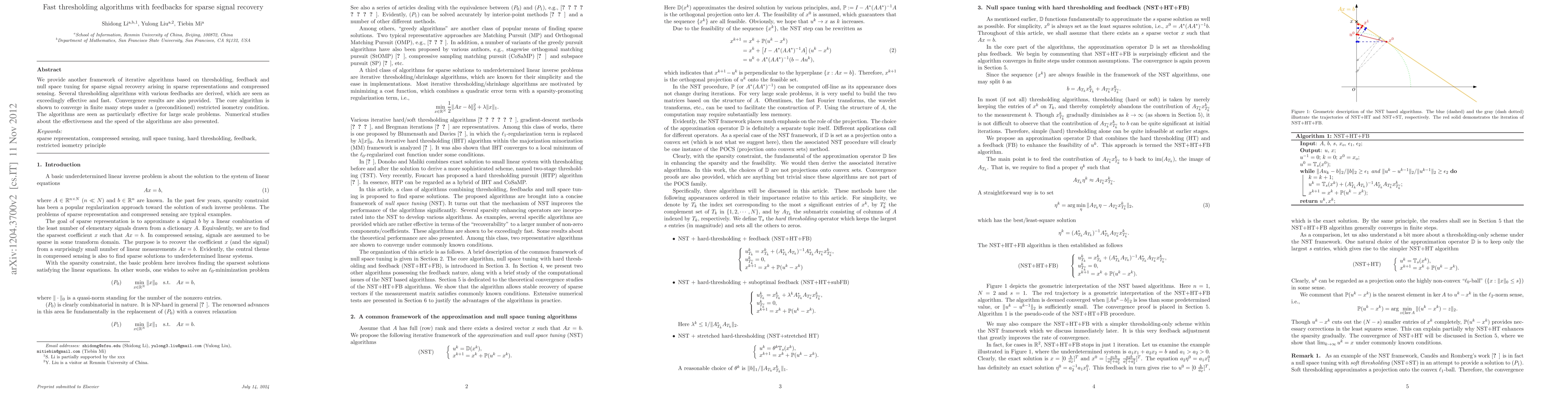 This paper introduces fast iterative thresholding algorithms with feedback mechanisms for sparse signal recovery in compressed sensing. The proposed algorithms converge quickly under certain conditions and are particularly effective for large-scale problems, as demonstrated by numerical studies.
