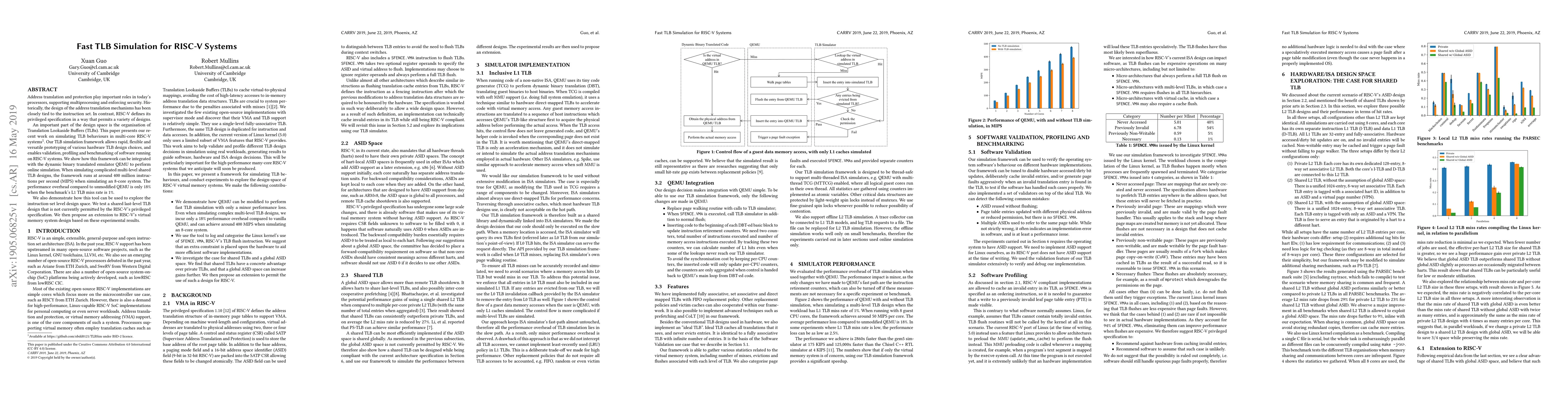 Address translation and protection play important roles in today's processors, supporting multiprocessing and enforcing security. Historically, the design of the address translation mechanisms has been closely tied to the instruction set. In contrast, RISC-V defines its privileged specification in a way that permits a variety of designs. An important part of the design space is the organisation of Translation Lookaside Buffers (TLBs). This paper presents our recent work on simulating TLB behaviours in multi-core RISC-V systems. Our TLB simulation framework allows rapid, flexible and versatile prototyping of various hardware TLB design choices, and enables validation, profiling and benchmarking of software running on RISC-V systems. We show how this framework can be integrated with the dynamic binary translated emulator QEMU to perform online simulation. When simulating complicated multi-level shared TLB designs, the framework runs at around 400 million instructions per second (MIPS) when simulating an 8-core system. The performance overhead compared to unmodified QEMU is only 18% when the benchmark's L1 TLB miss rate is 1%. We also demonstrate how this tool can be used to explore the instruction-set level design space. We test a shared last-level TLB design that is not currently permitted by the RISC-V's privileged specification. We then propose an extension to RISC-V's virtual memory system design based on these experimental results.