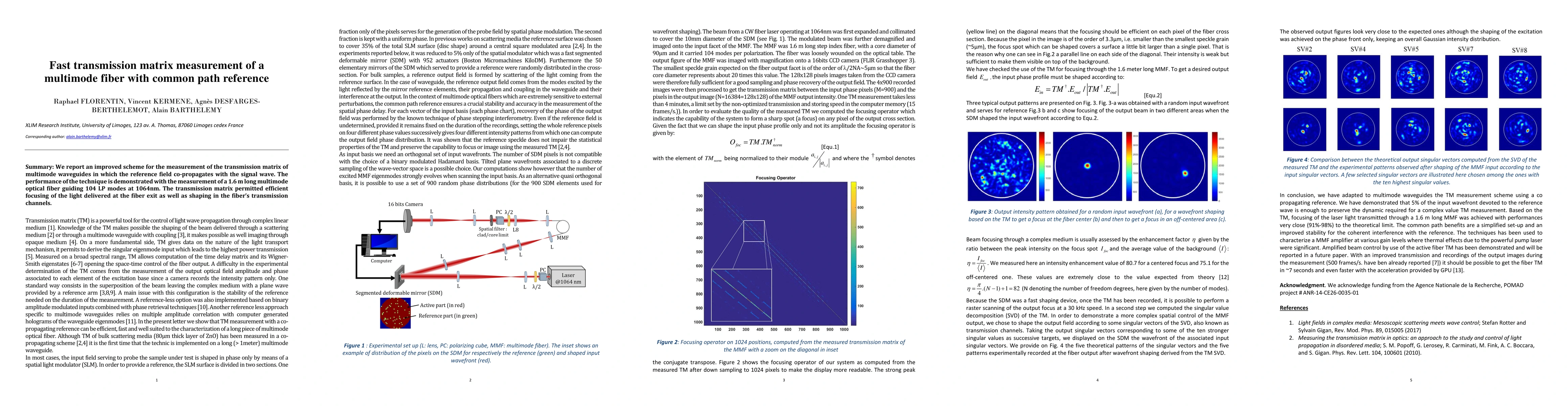 The paper presents an improved scheme for measuring the transmission matrix of multimode waveguides using a common path reference, enabling efficient focusing and shaping of light transmission channels in multimode fibers.