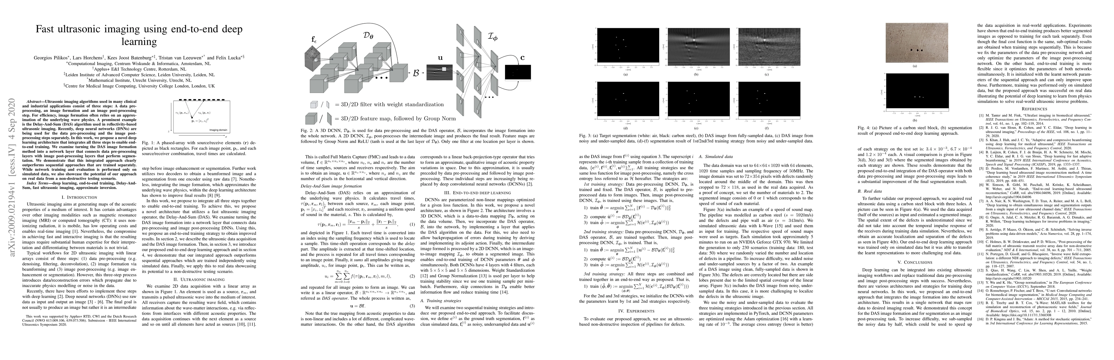 This paper proposes an end-to-end deep learning architecture integrating data pre-processing, image formation, and post-processing for ultrasonic imaging, outperforming traditional sequential methods. The approach transforms the Delay-And-Sum algorithm into a network layer, demonstrating superior performance on both simulated and real non-destructive testing data.