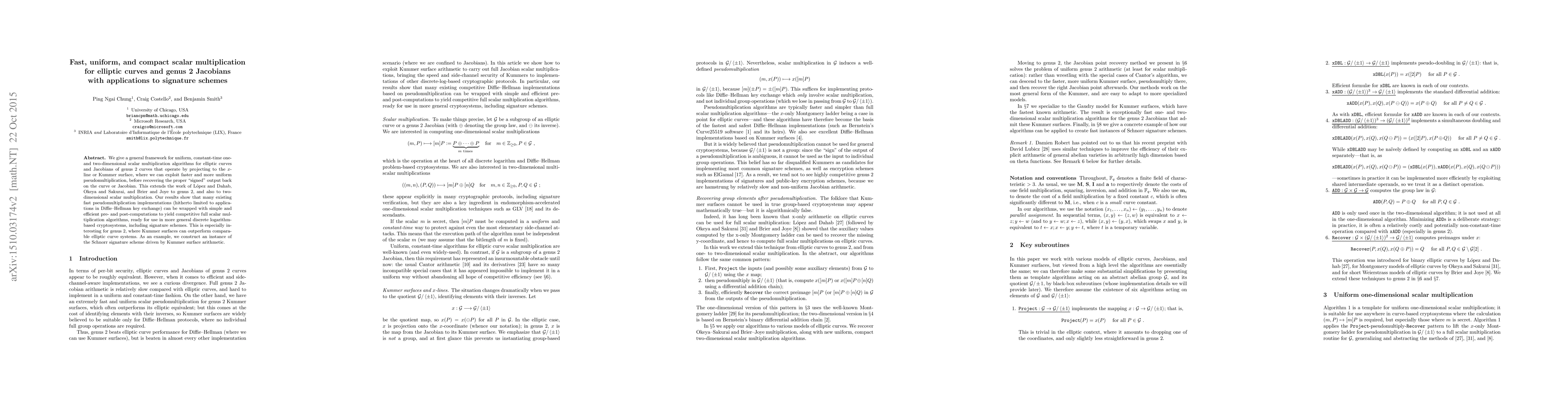 We give a general framework for uniform, constant-time one-and two-dimensional scalar multiplication algorithms for elliptic curves and Jacobians of genus 2 curves that operate by projecting to the x-line or Kummer surface, where we can exploit faster and more uniform pseudomultiplication, before recovering the proper "signed" output back on the curve or Jacobian. This extends the work of L{\'o}pez and Dahab, Okeya and Sakurai, and Brier and Joye to genus 2, and also to two-dimensional scalar multiplication. Our results show that many existing fast pseudomultiplication implementations (hitherto limited to applications in Diffie--Hellman key exchange) can be wrapped with simple and efficient pre-and post-computations to yield competitive full scalar multiplication algorithms, ready for use in more general discrete logarithm-based cryptosystems, including signature schemes. This is especially interesting for genus 2, where Kummer surfaces can outperform comparable elliptic curve systems. As an example, we construct an instance of the Schnorr signature scheme driven by Kummer surface arithmetic.