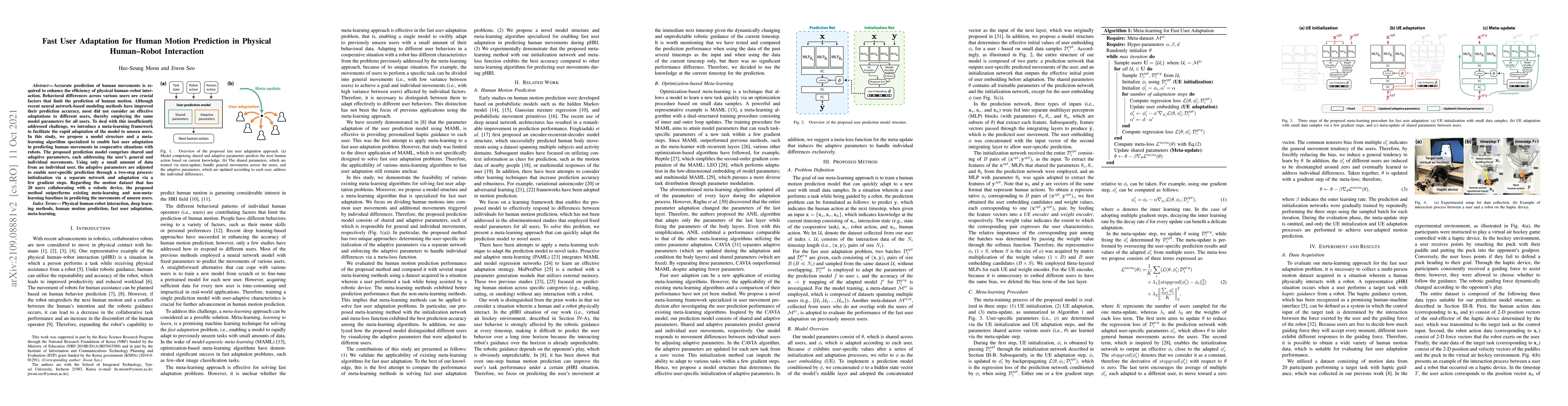 A new meta-learning framework improves human motion prediction in physical human-robot interaction by adapting to individual users' behaviors, outperforming existing methods with 20-user dataset.