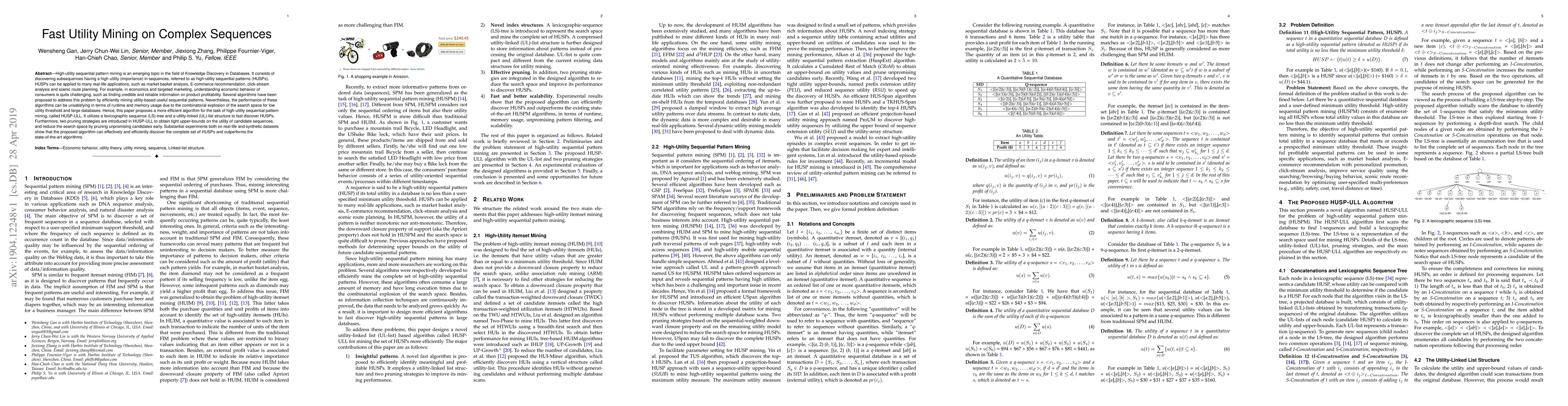 This paper proposes a new algorithm, HUSP-ULL, for efficient high-utility sequential pattern mining, utilizing a lexicographic sequence tree and utility-linked list structure. It introduces pruning strategies to reduce the search space and outperforms existing algorithms in terms of runtime and memory usage.