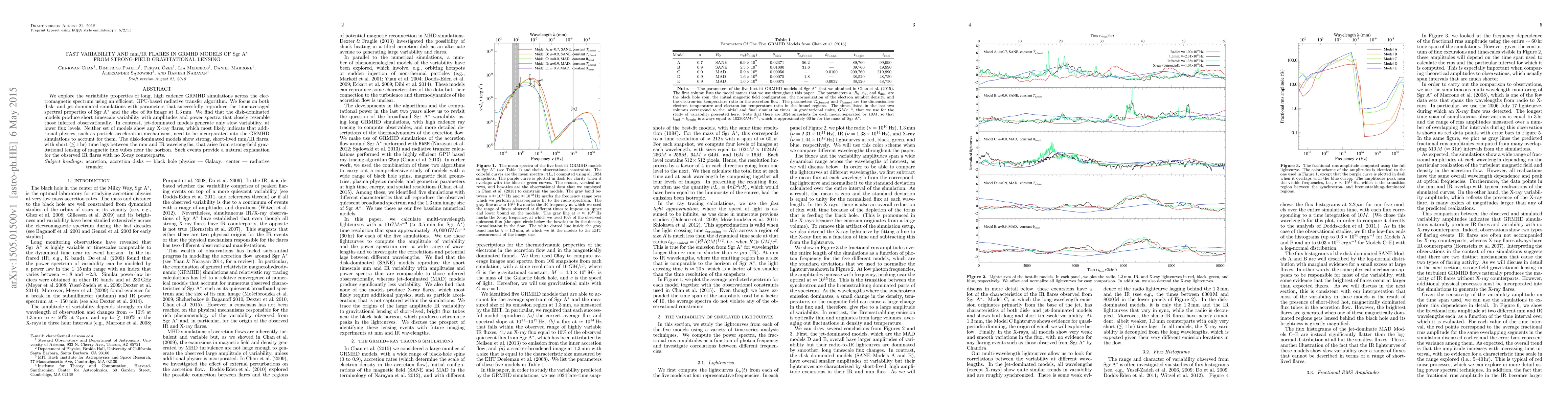 We explore the variability properties of long, high cadence GRMHD simulations across the electromagnetic spectrum using an efficient, GPU-based radiative transfer algorithm. We focus on both disk- and jet-dominated simulations with parameters that successfully reproduce the time-averaged spectral properties of Sgr A* and the size of its image at 1.3mm. We find that the disk-dominated models produce short timescale variability with amplitudes and power spectra that closely resemble those inferred observationally. In contrast, jet-dominated models generate only slow variability, at lower flux levels. Neither set of models show any X-ray flares, which most likely indicate that additional physics, such as particle acceleration mechanisms, need to be incorporated into the GRMHD simulations to account for them. The disk-dominated models show strong, short-lived mm/IR flares, with short (<~ 1hr) time lags between the mm and IR wavelengths, that arise from strong-field gravitational lensing of magnetic flux tubes near the horizon. Such events provide a natural explanation for the observed IR flares with no X-ray counterparts.