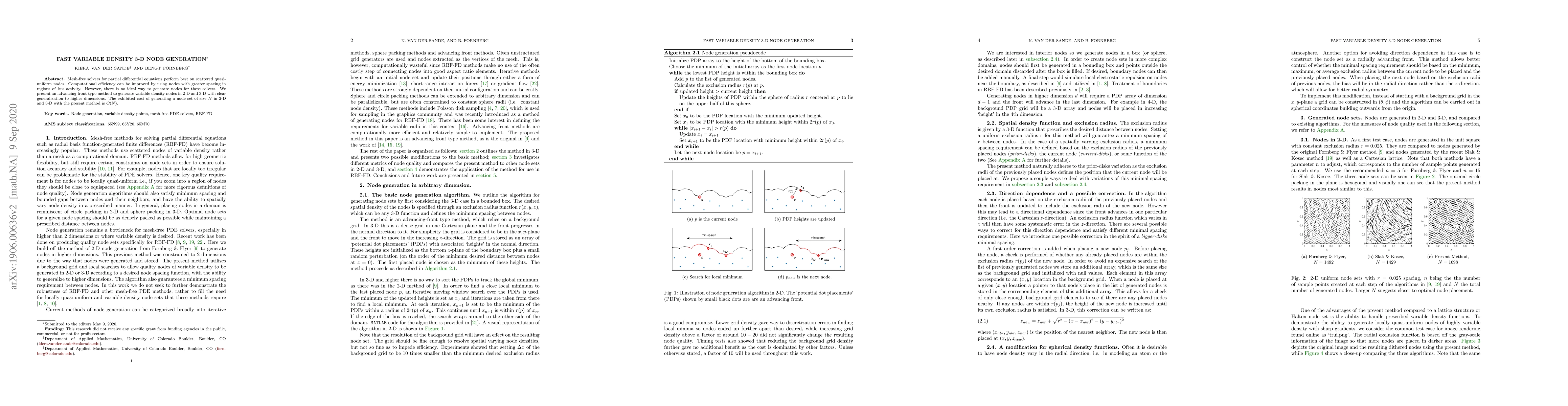 This paper introduces an advancing front method for generating variable density node sets in 2-D and 3-D, optimizing mesh-free solvers for partial differential equations by spacing nodes more sparsely in inactive regions. The method achieves a computational efficiency of O(N) for generating a node set of size N.